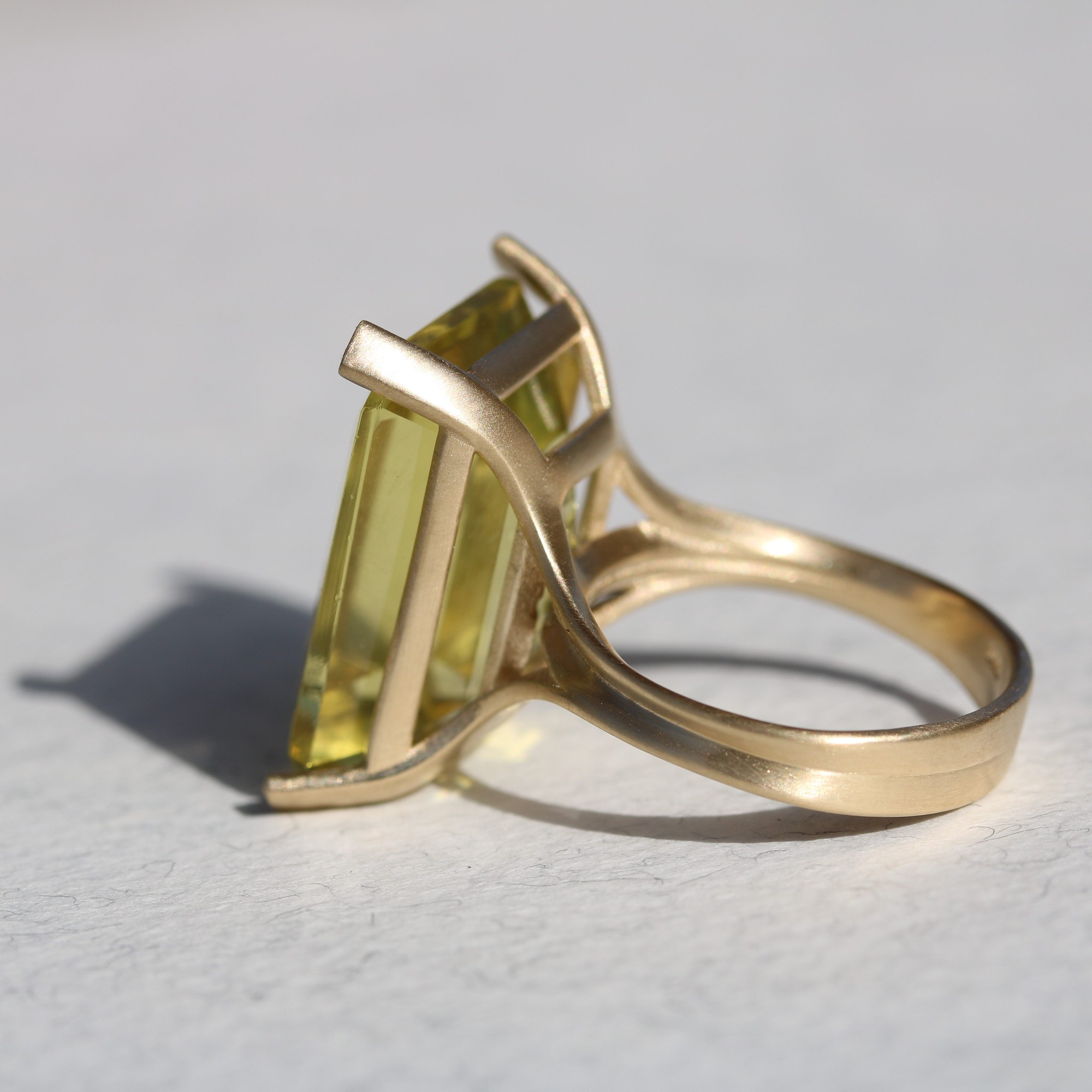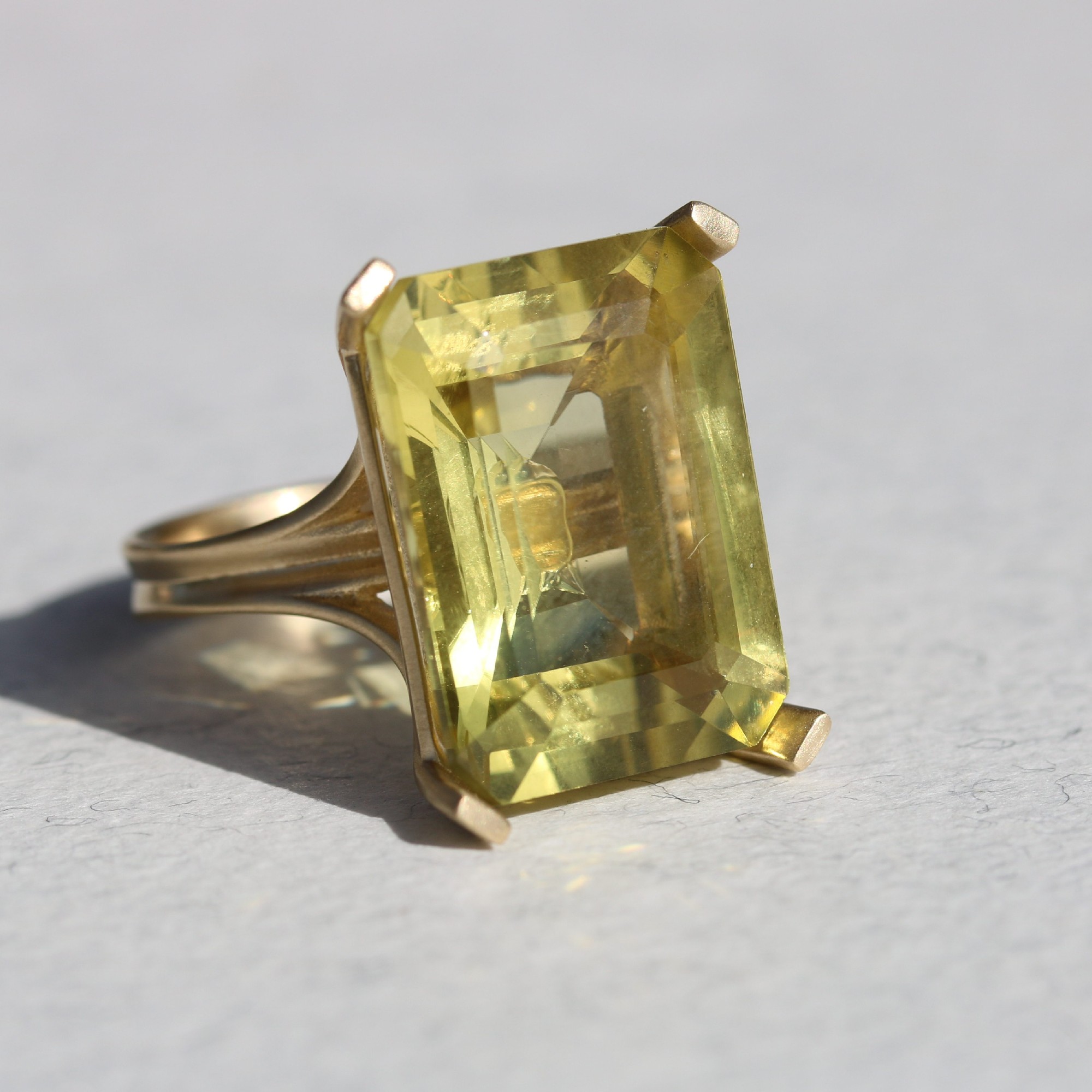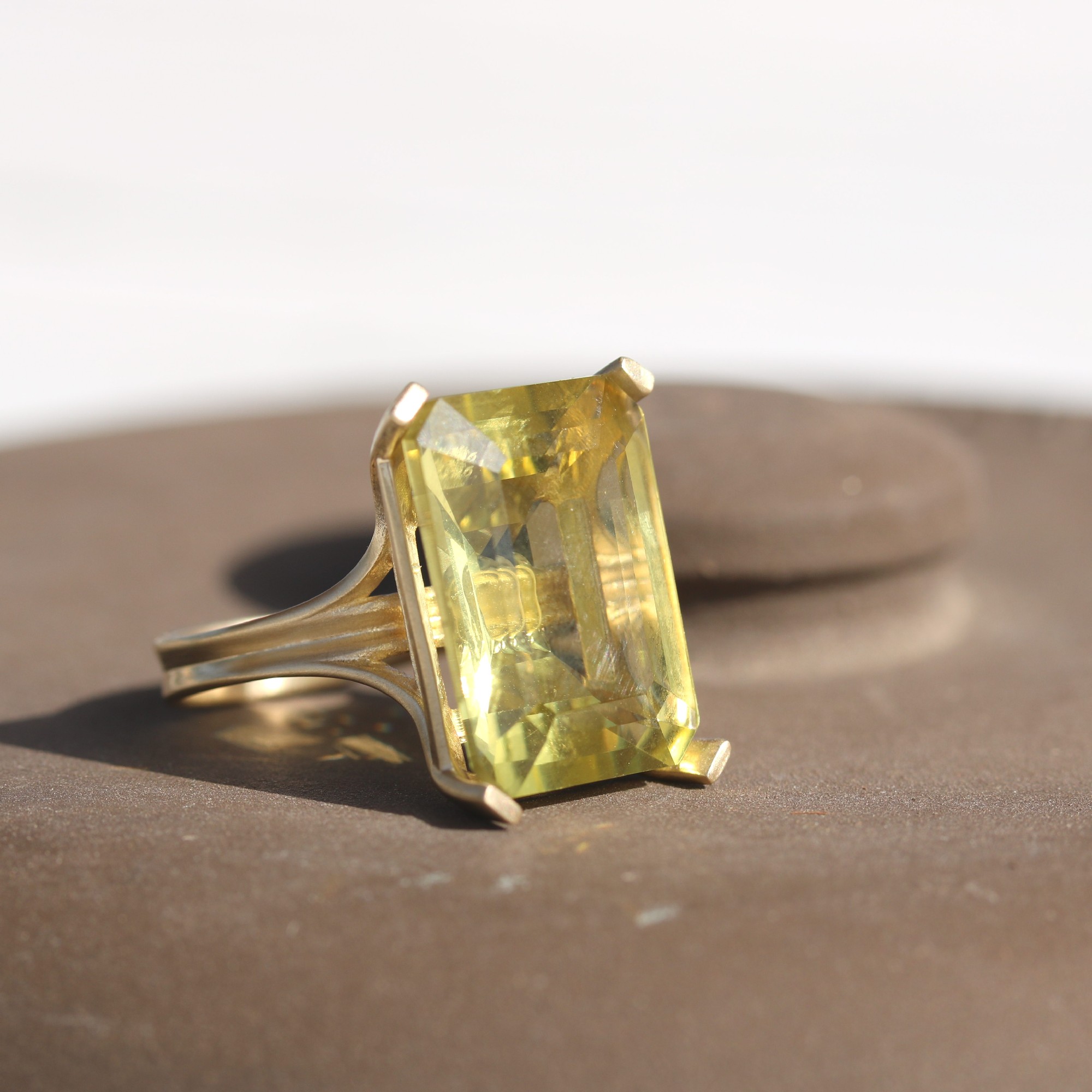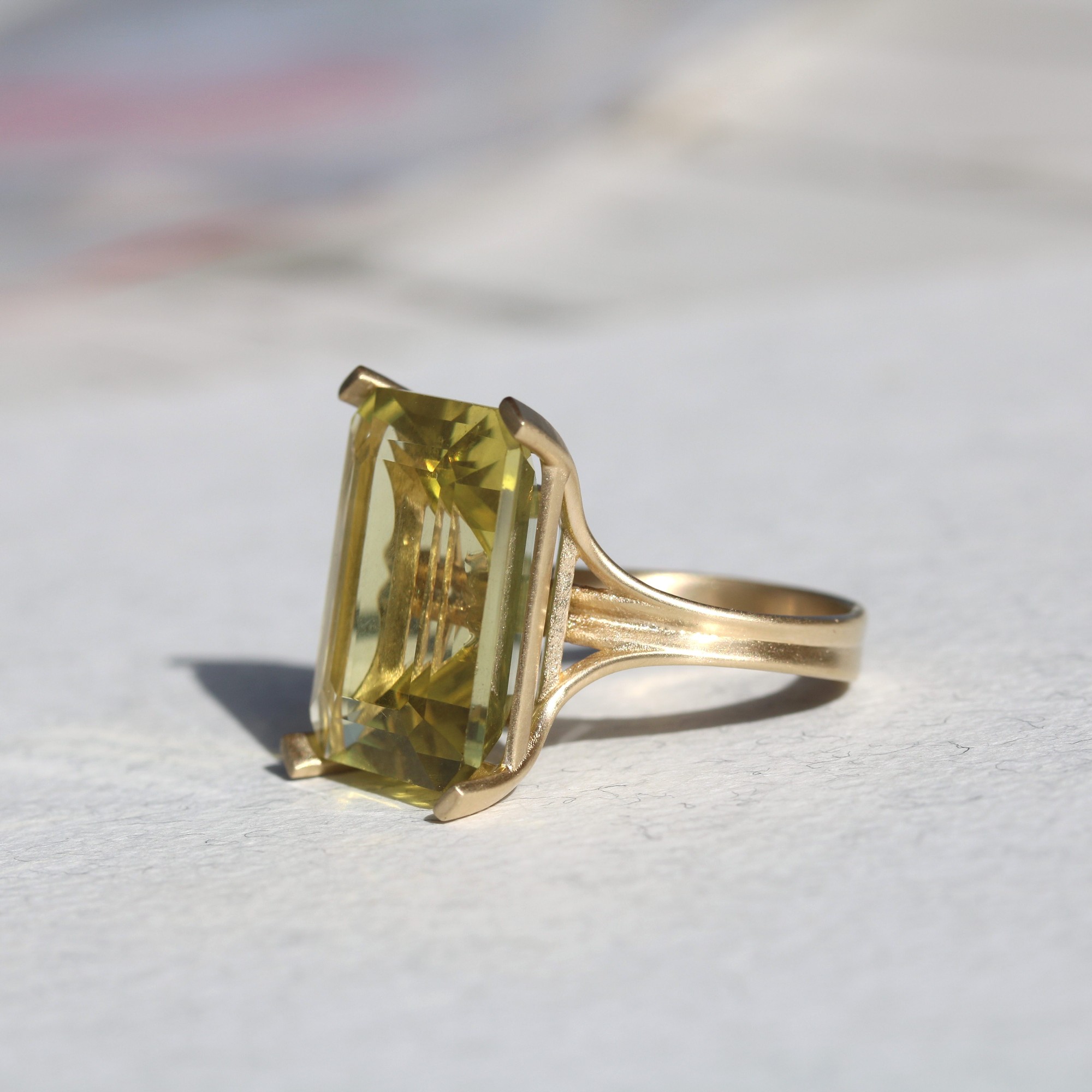 טבעת בזהב צהוב 14K, משובצת  למון קוורץ