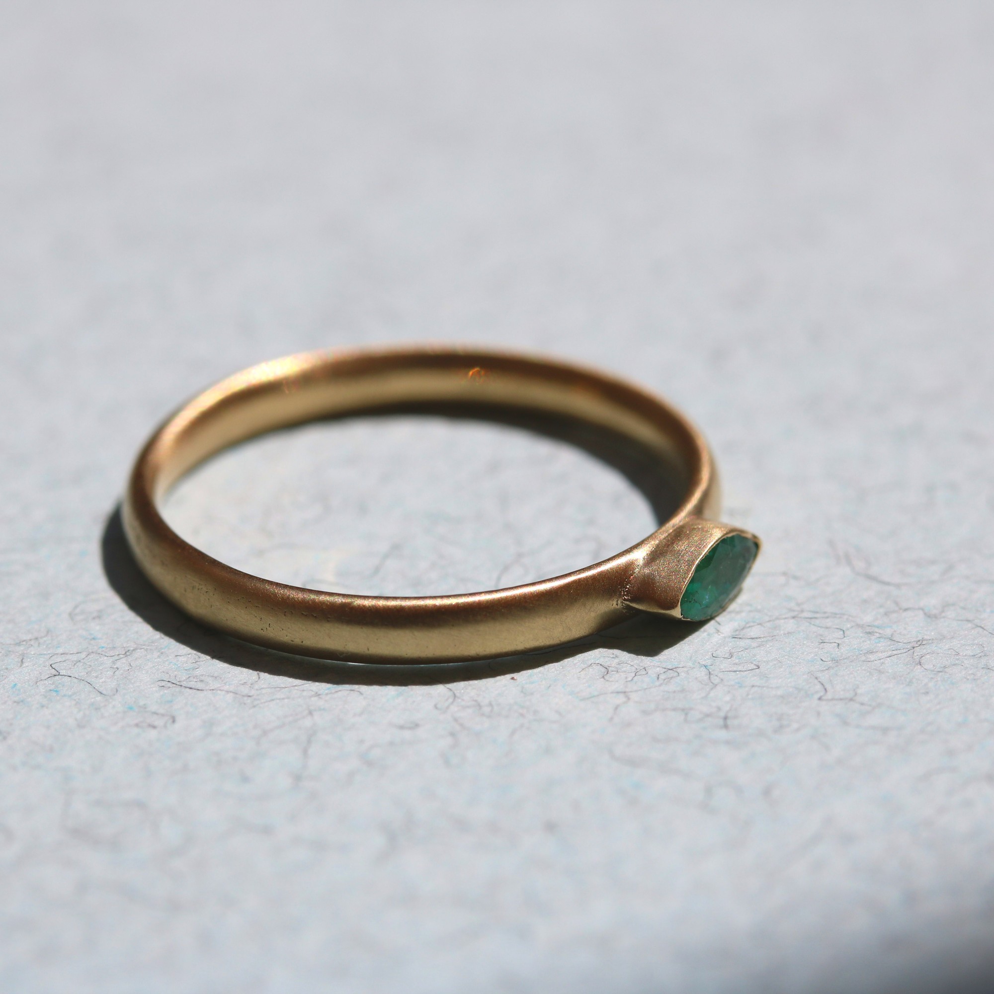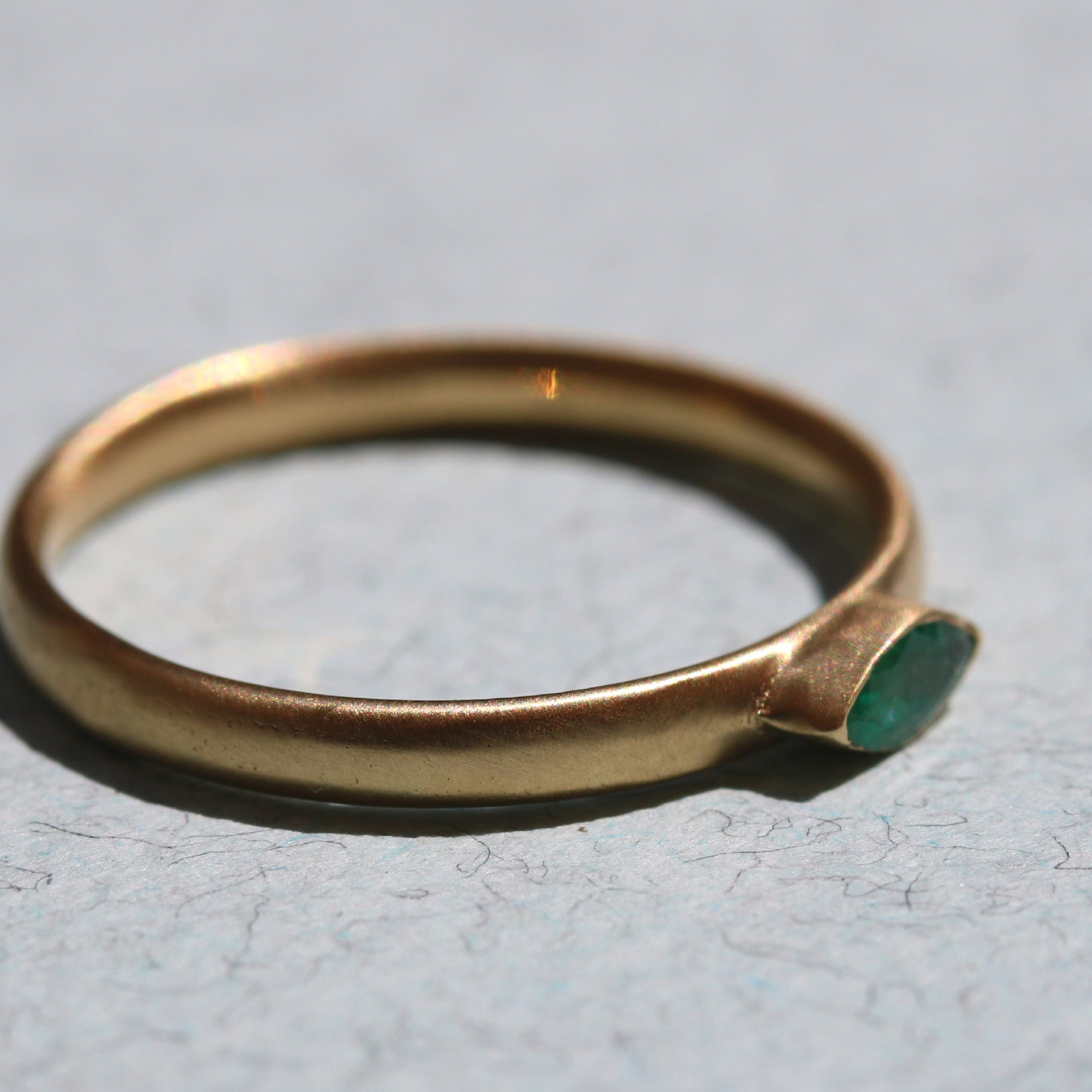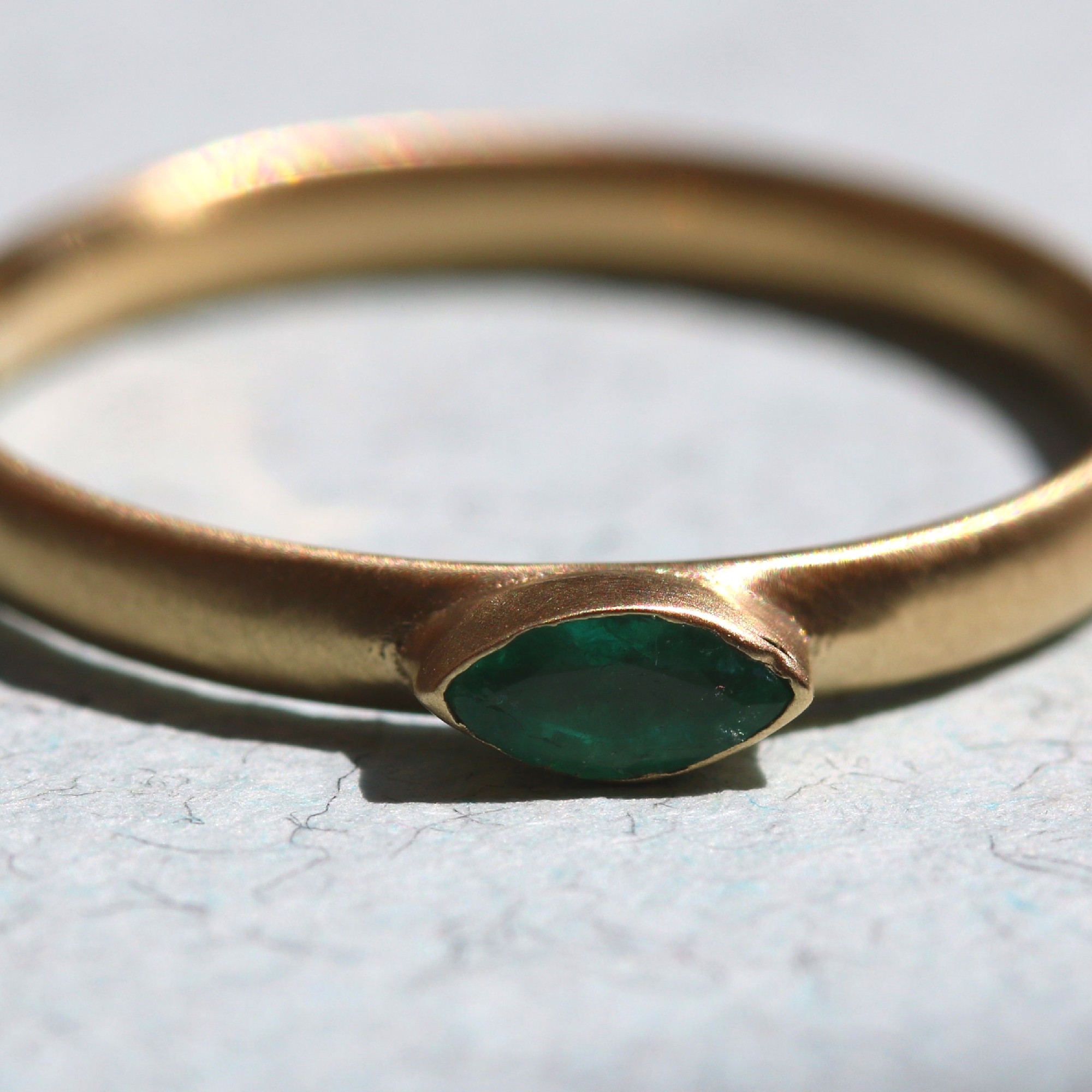 | טבעת בזהב צהוב 14K בגימור מט משובצת אמרלד . |