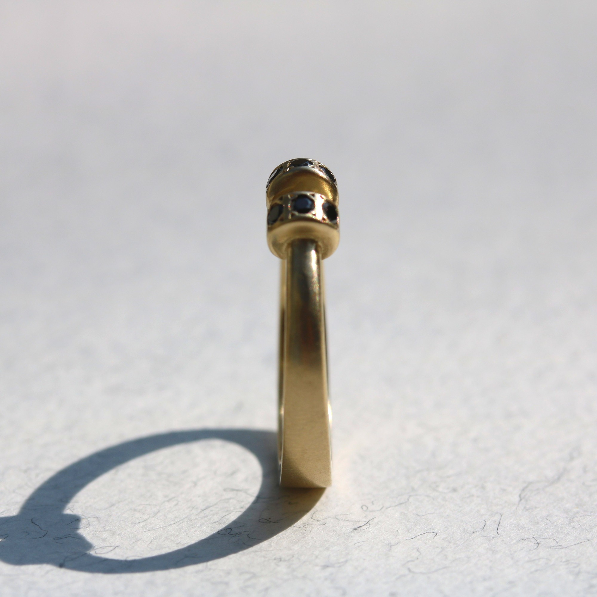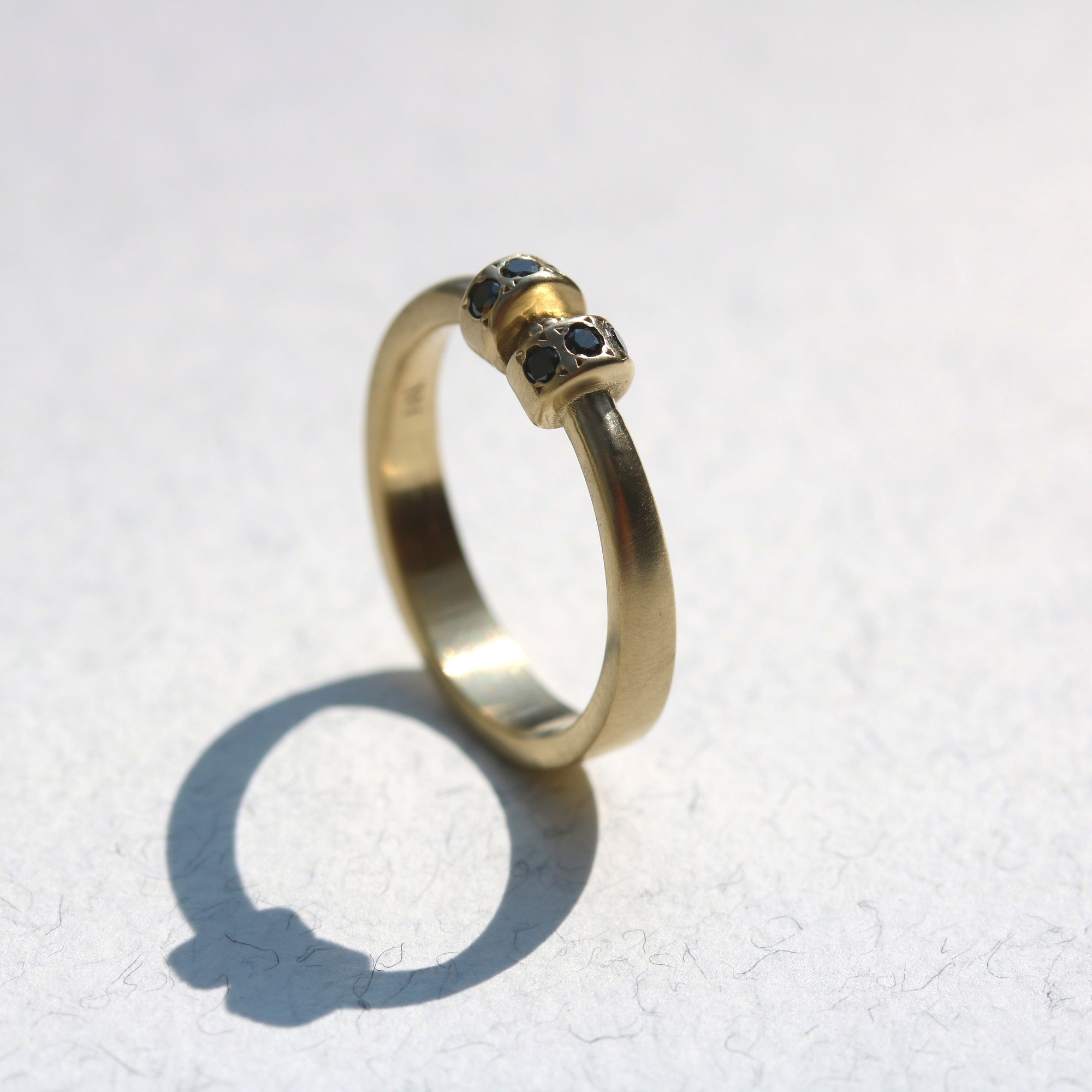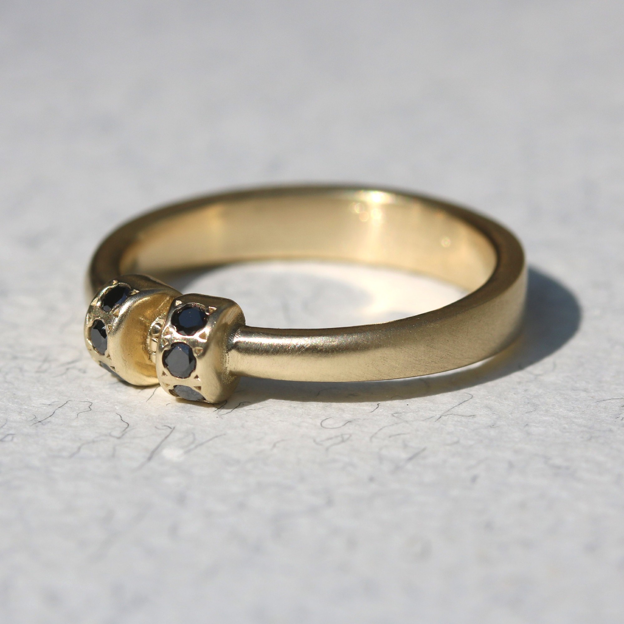 | טבעת בזהב צהוב 14K בגימור מט משובצת יהלומים שחורים . |