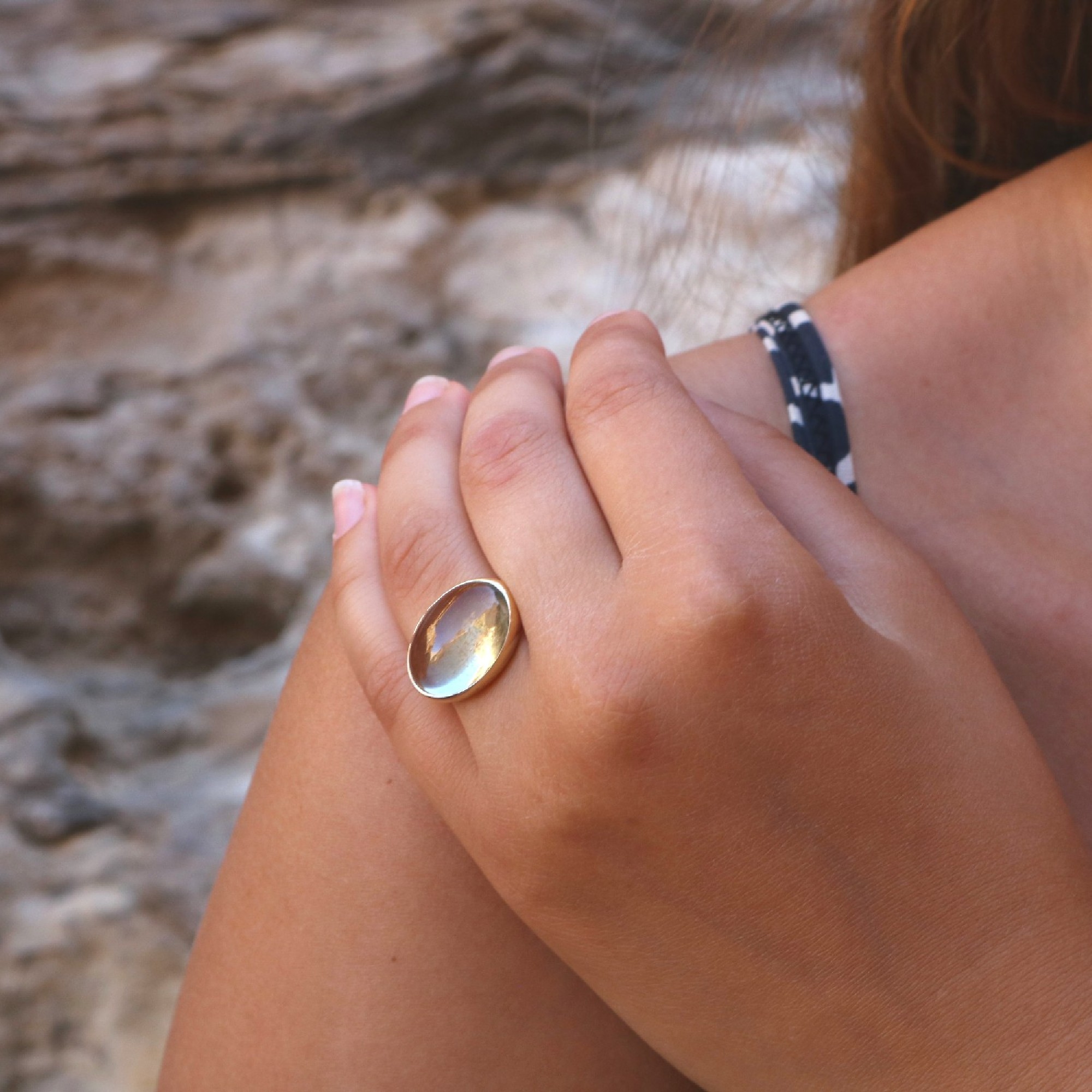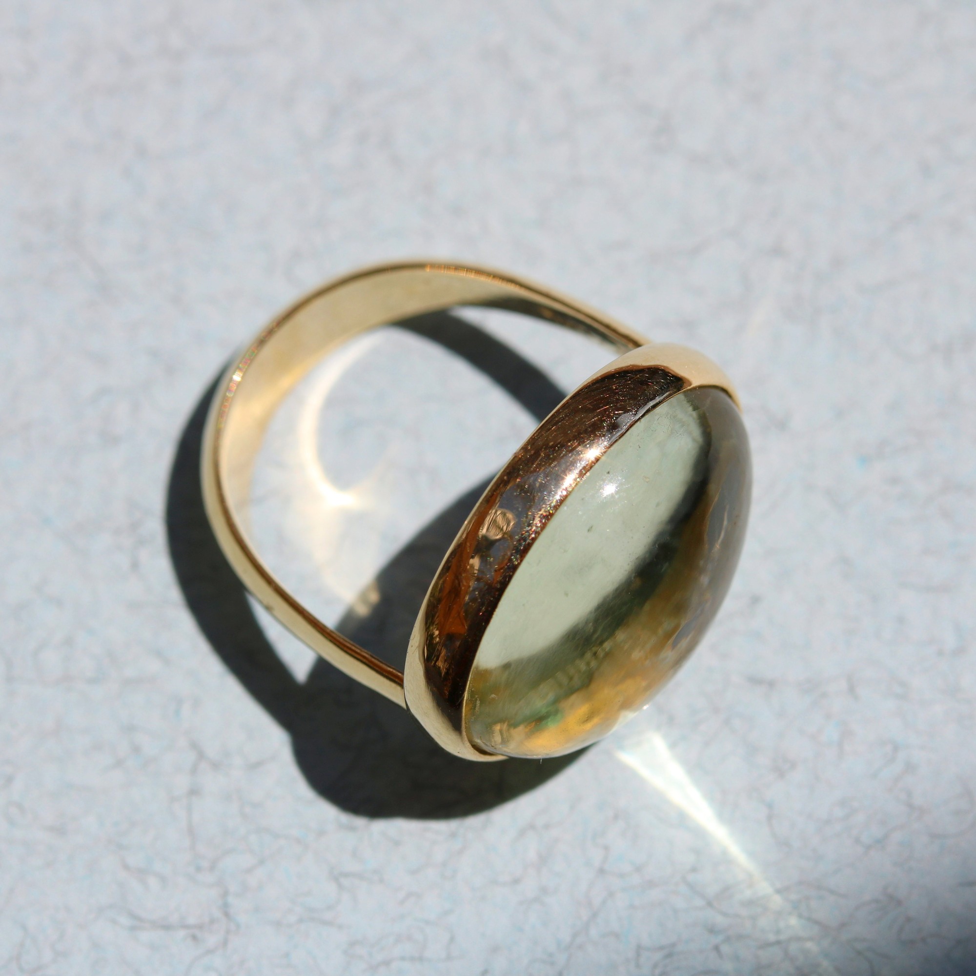 | טבעת בזהב צהוב 14K, משובצת גרין אמטיסט |