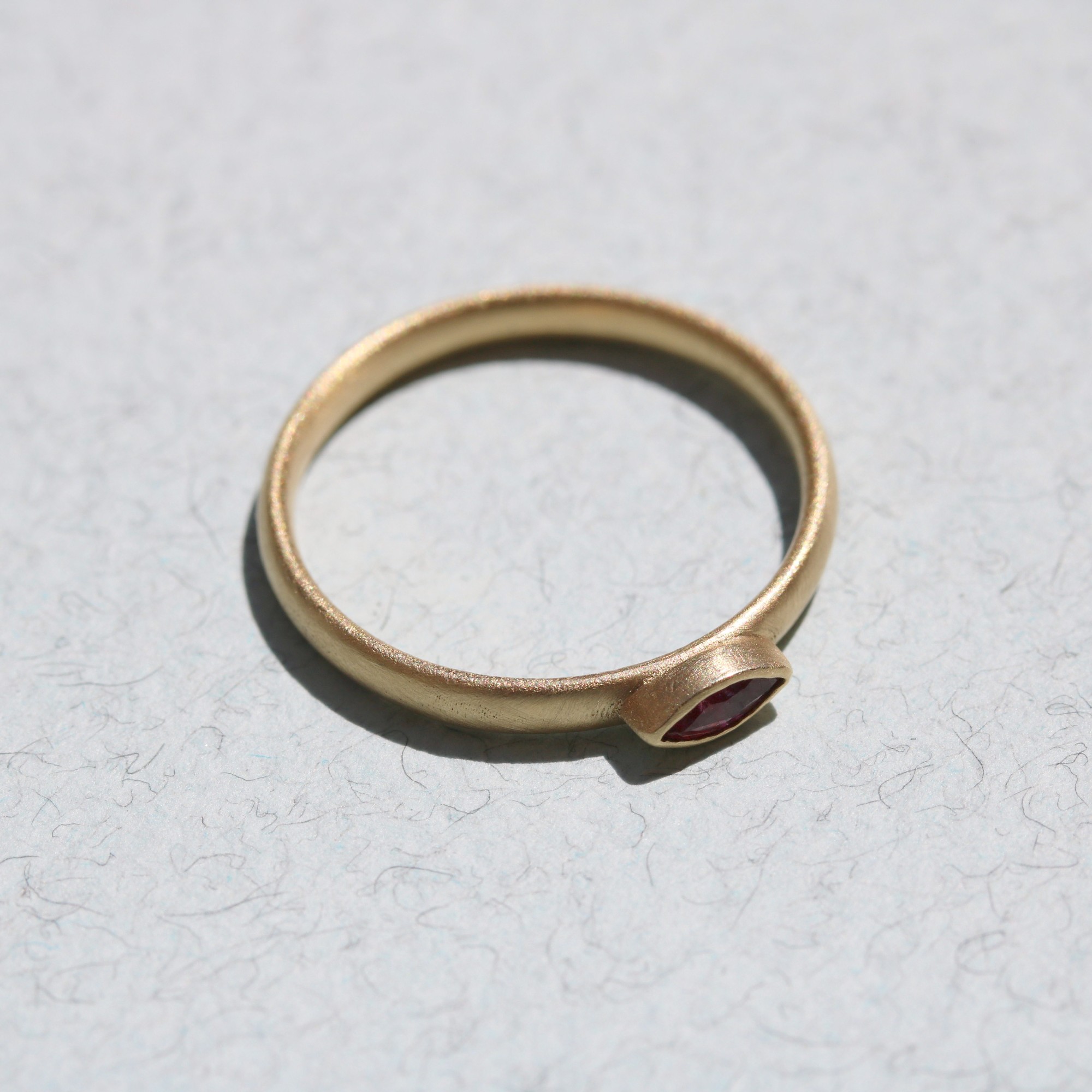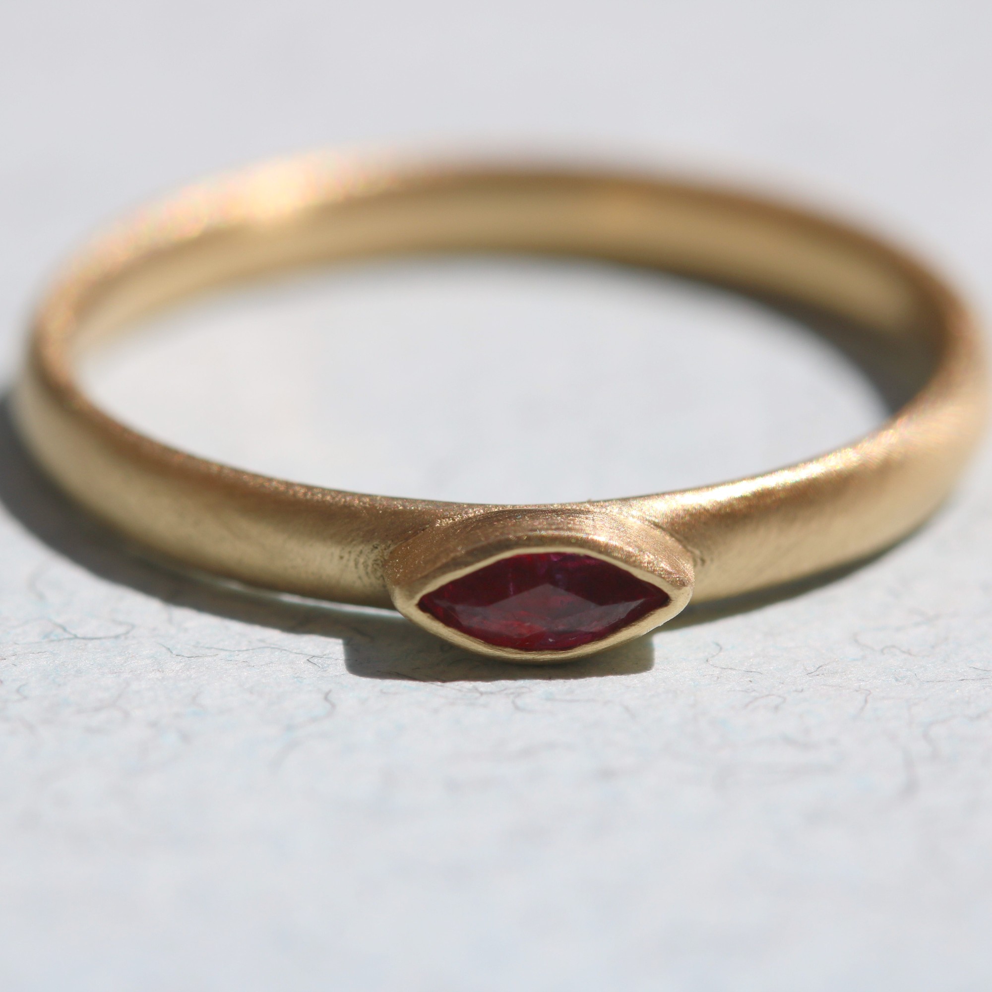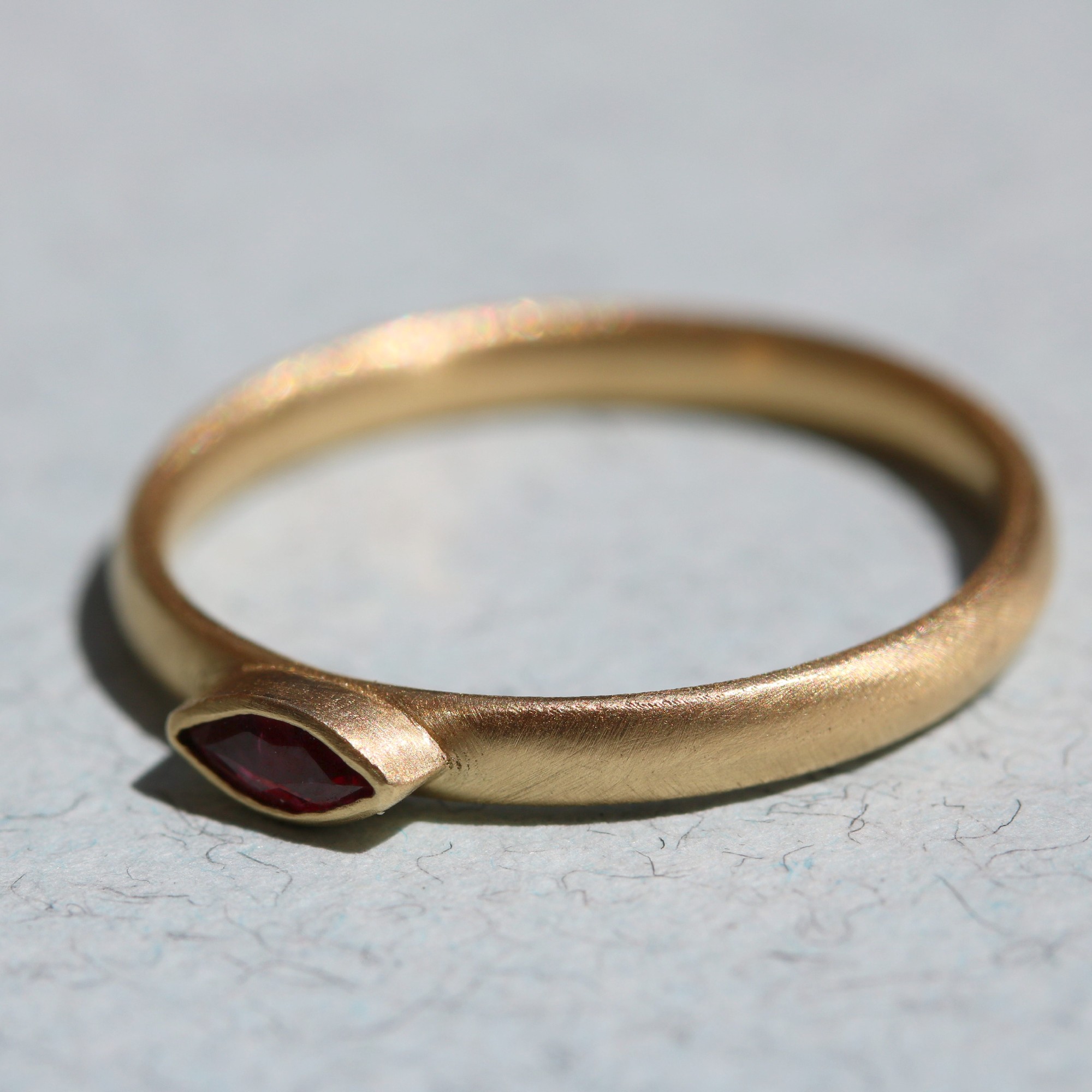 | טבעת בזהב צהוב 14K בגימור מט משובצת רובי . |