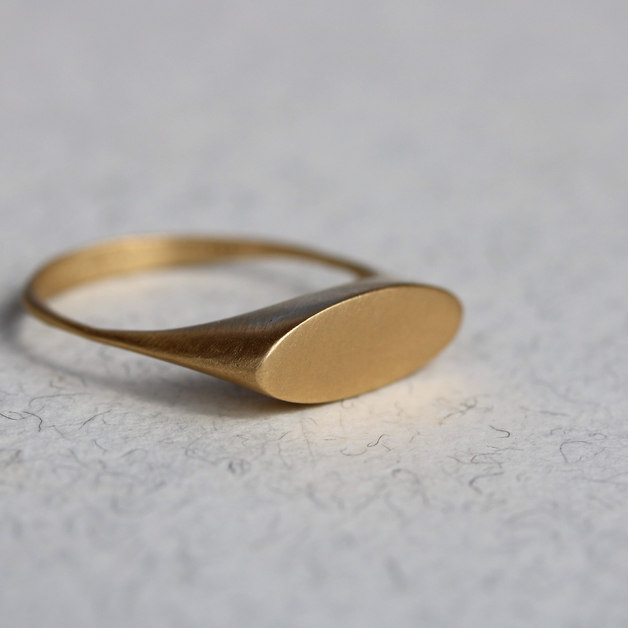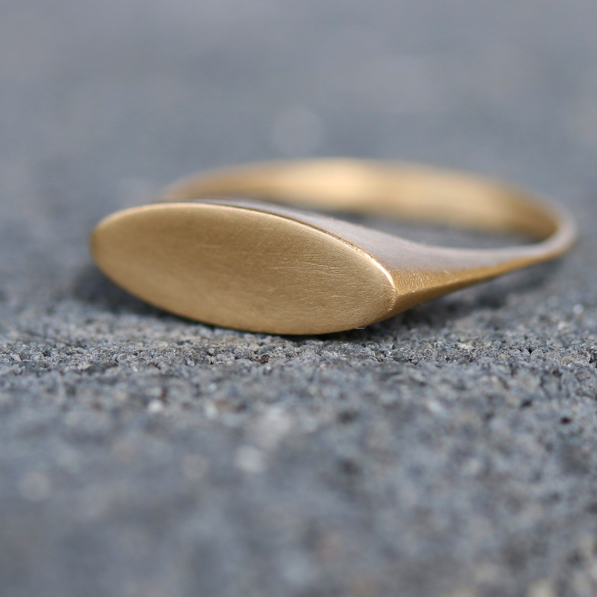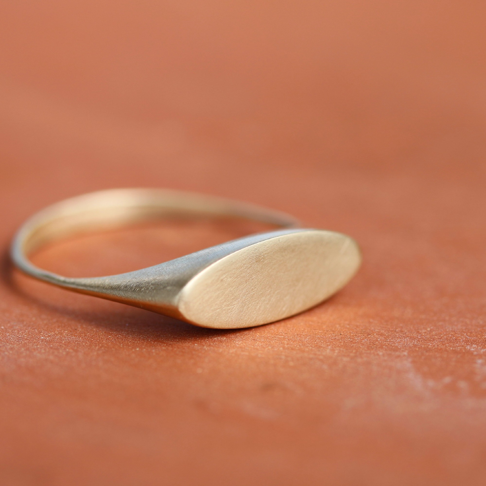 טבעת חותם אובלית בזהב צהוב 14K בגימור מט.