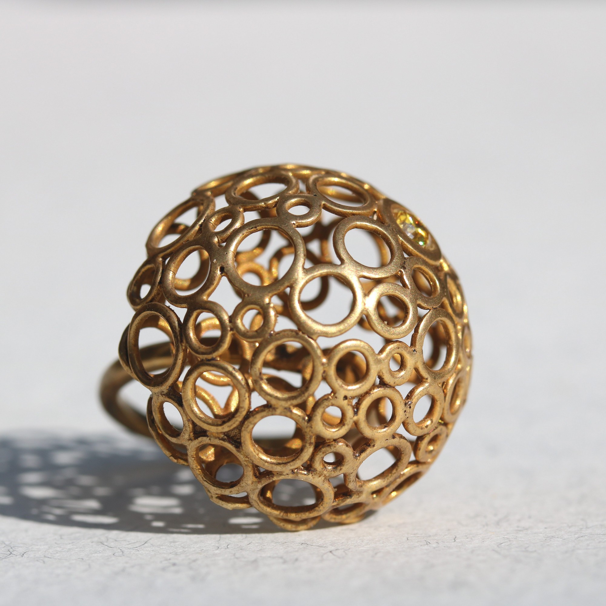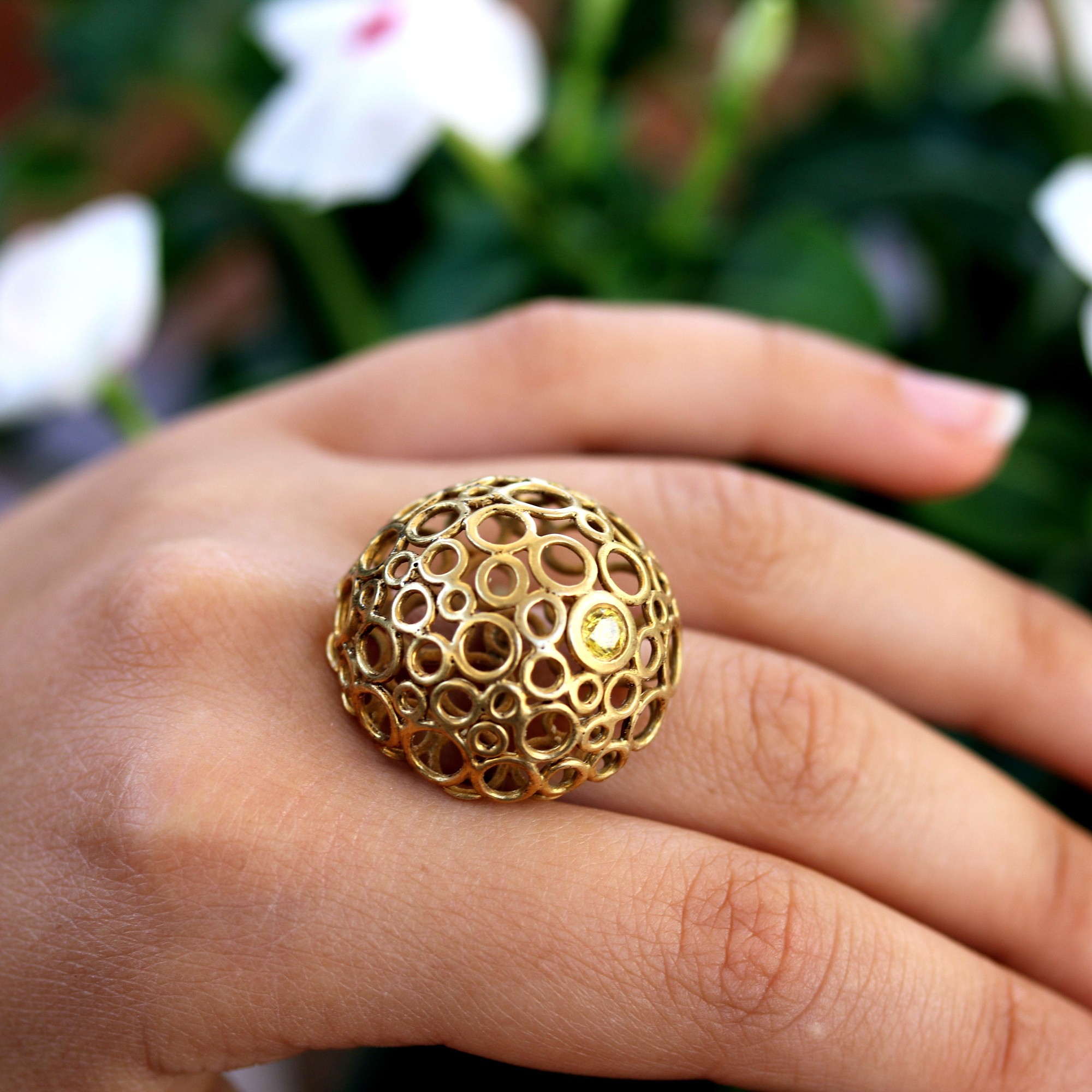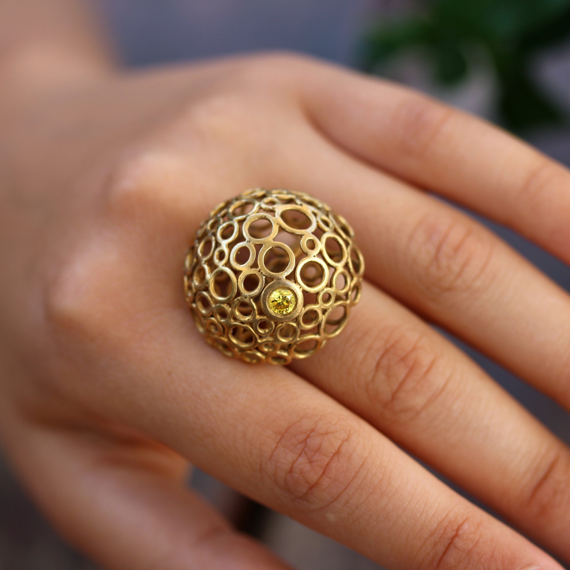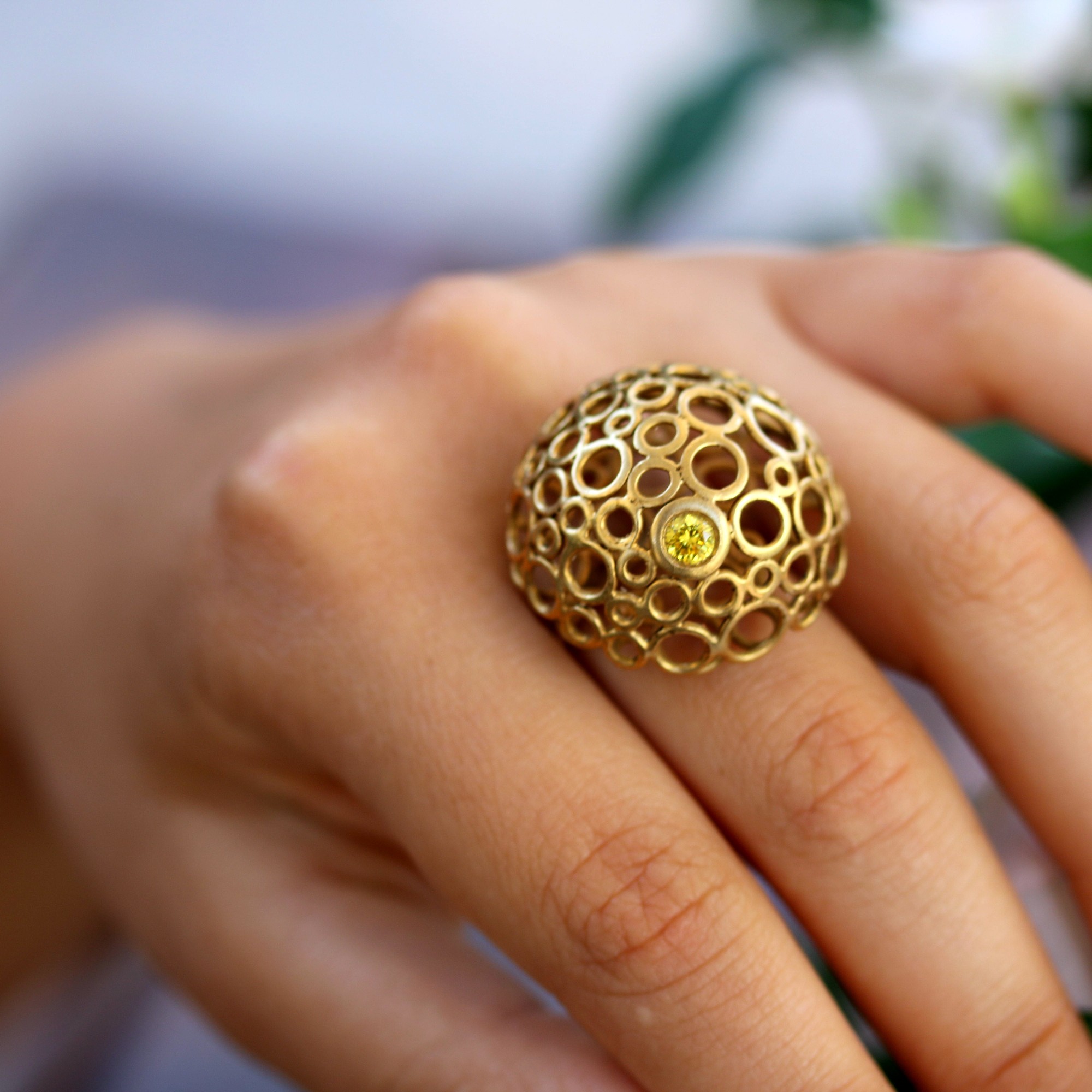 טבעת חצי כדור בכסף מצופה זהב 18K בשיבוץ סיטרין