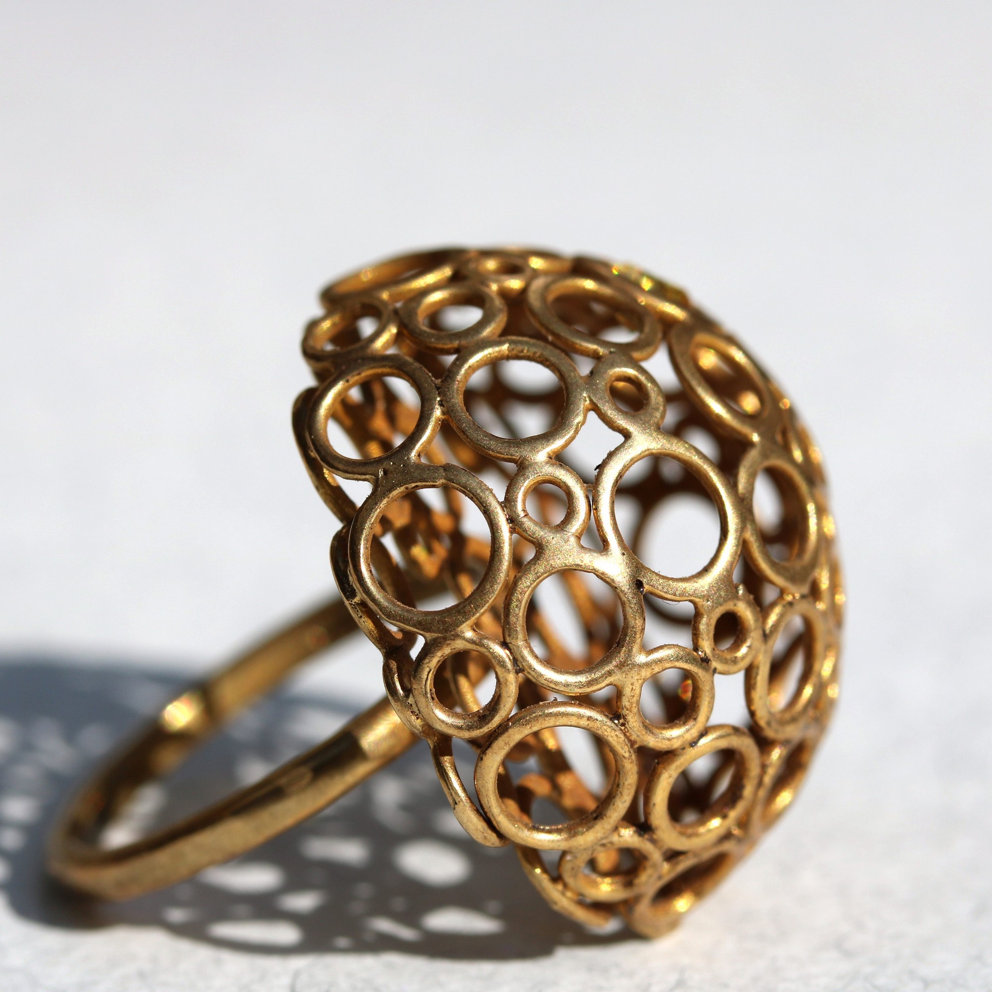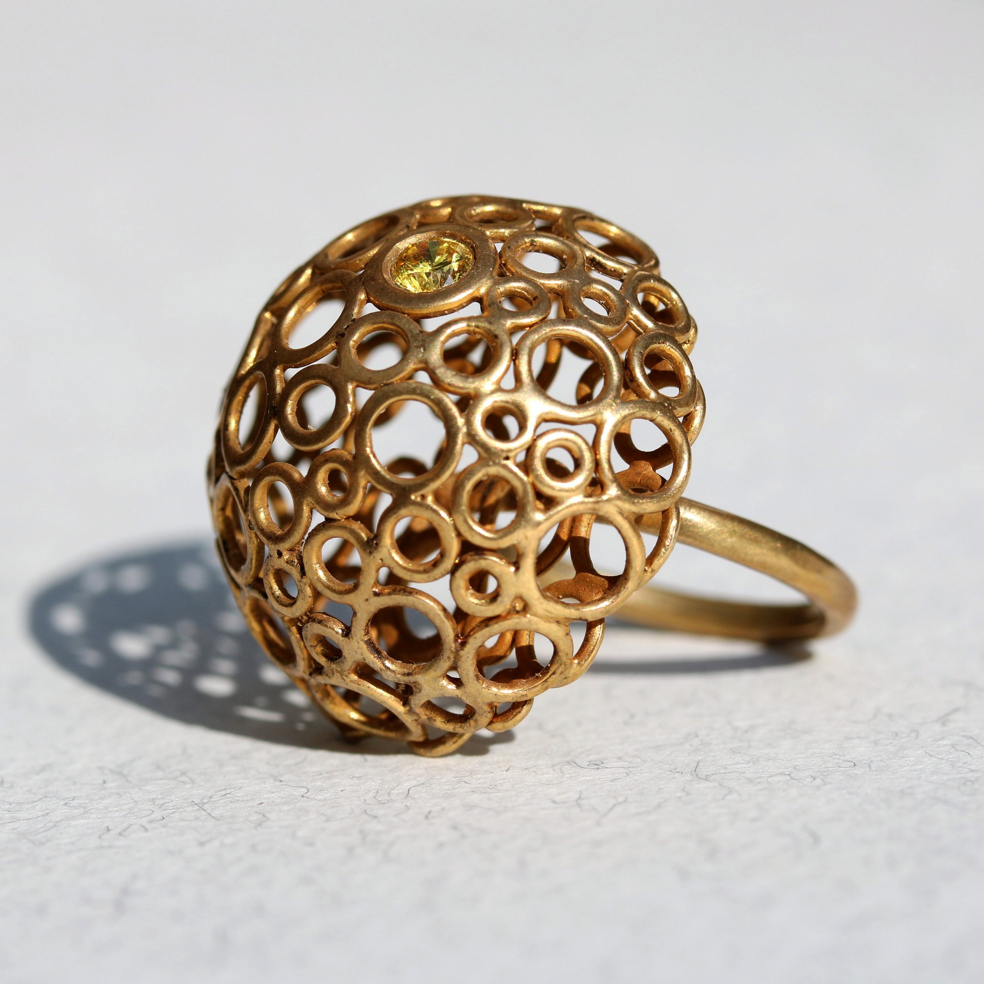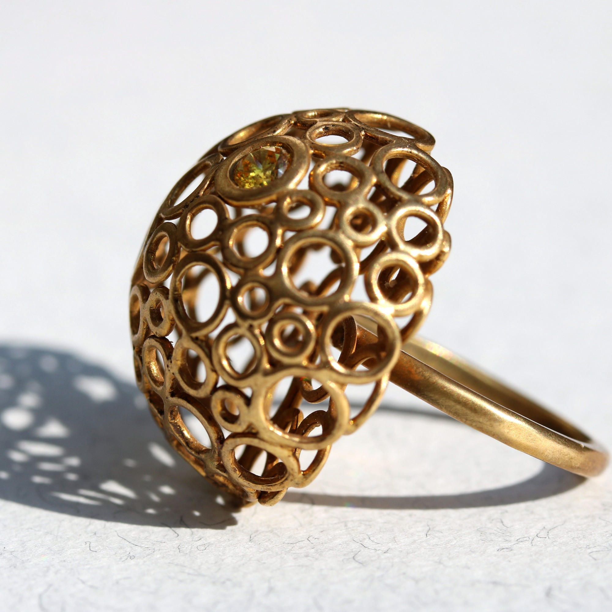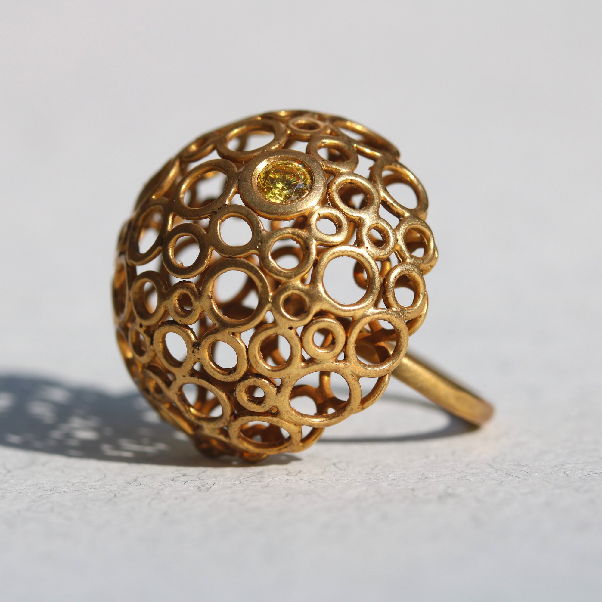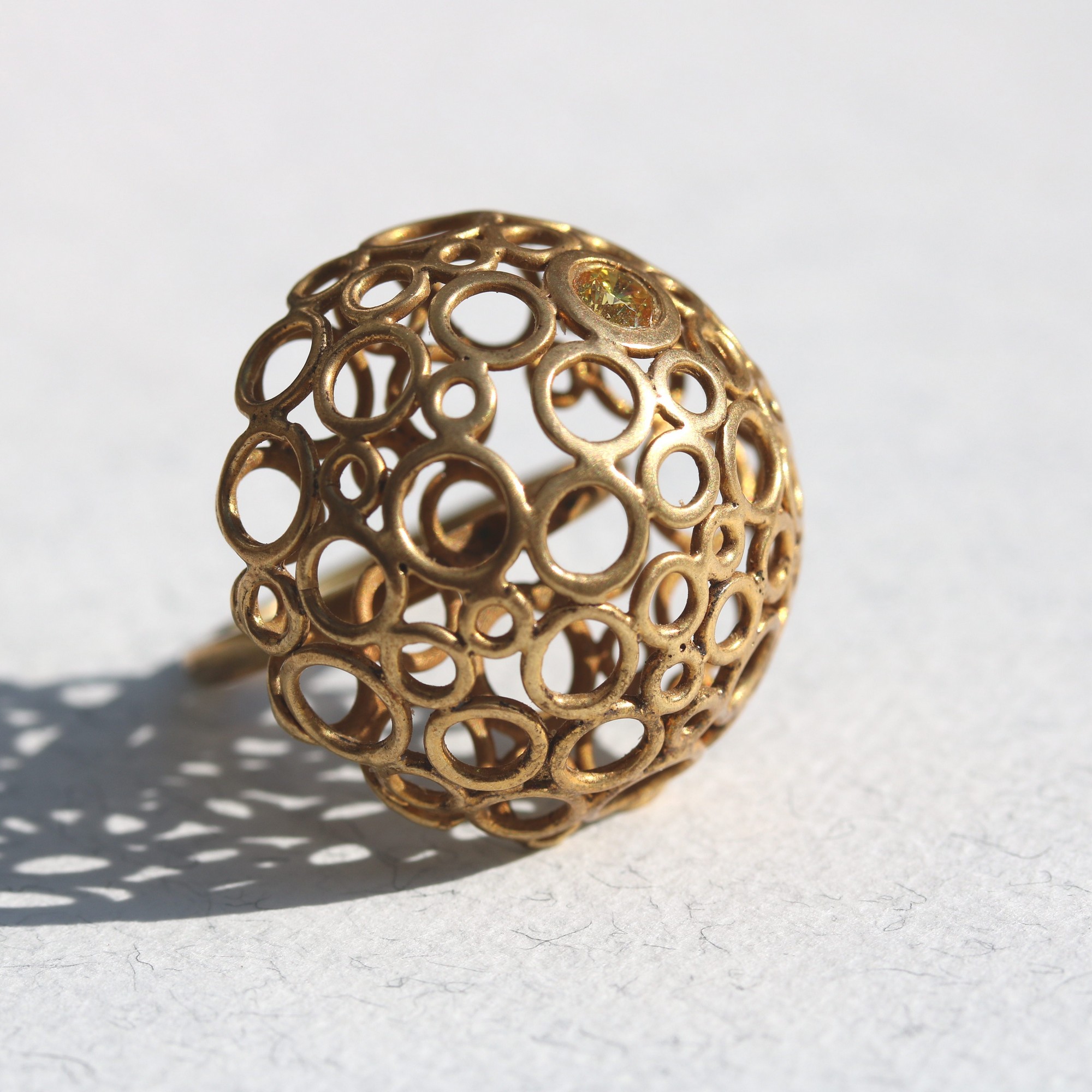 טבעת חצי כדור בכסף מצופה זהב 18K בשיבוץ סיטרין