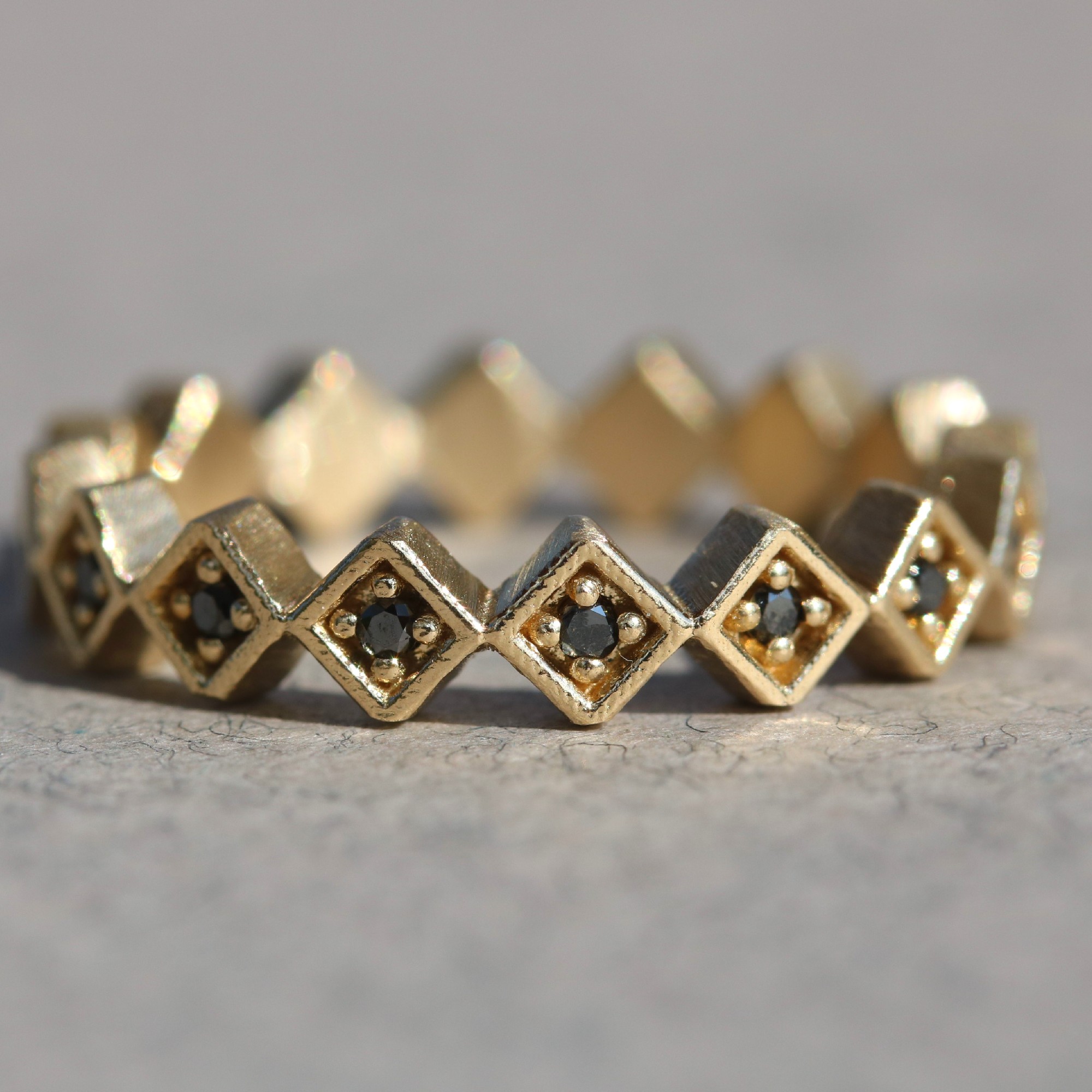 טבעת אליס ריבועים משוננת יהלומים שחורים