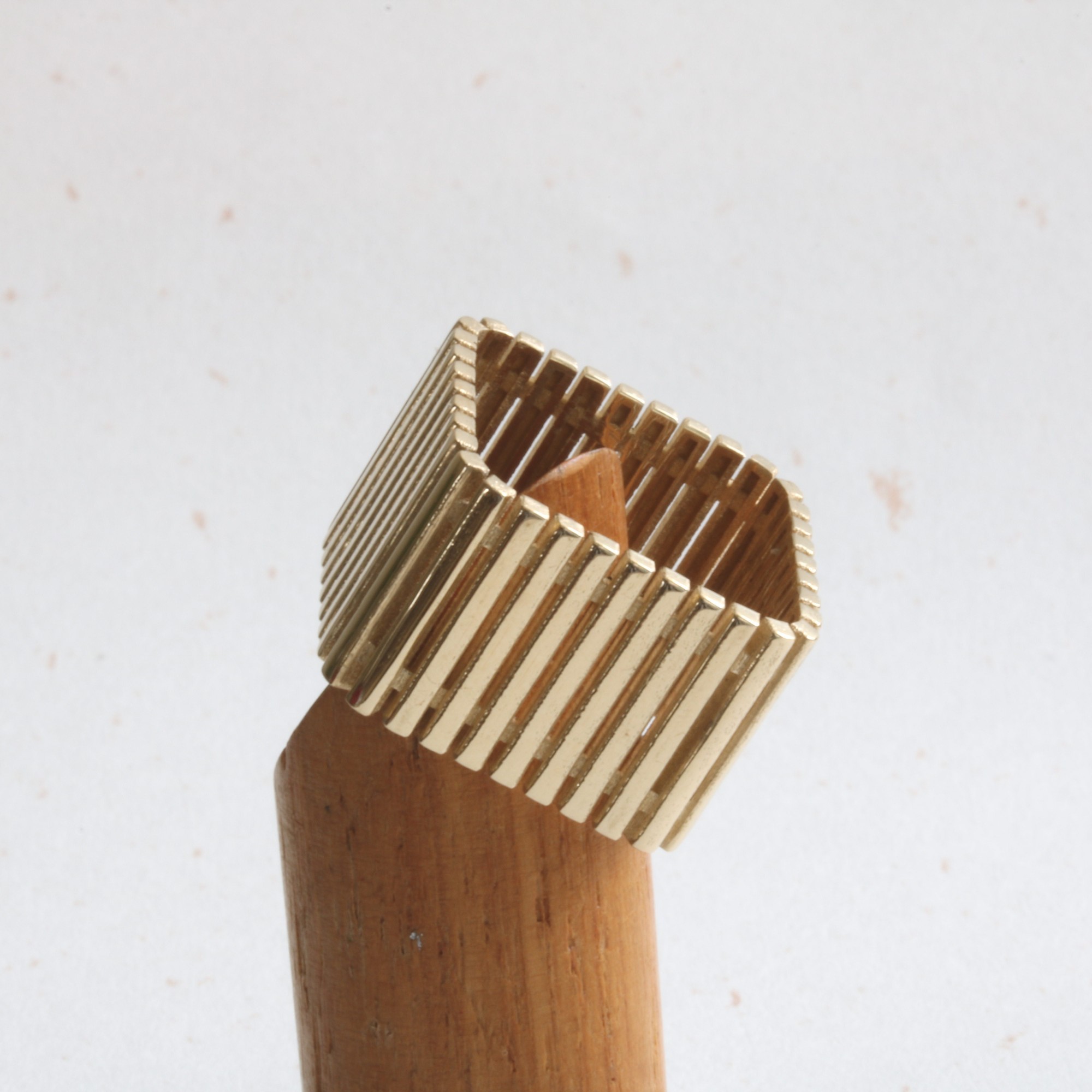 טבעת שלבים בזהב צהוב 14K בגימור מט .