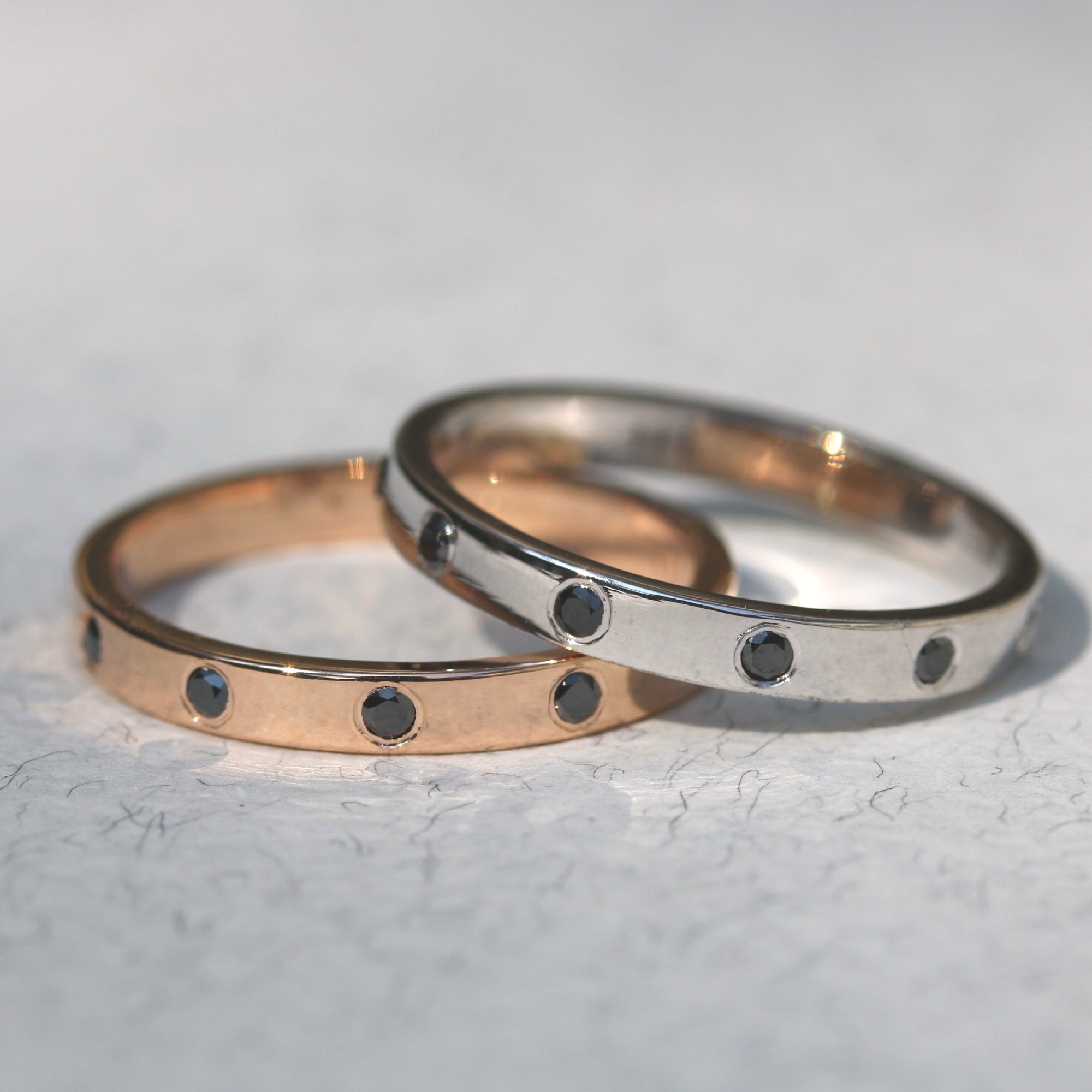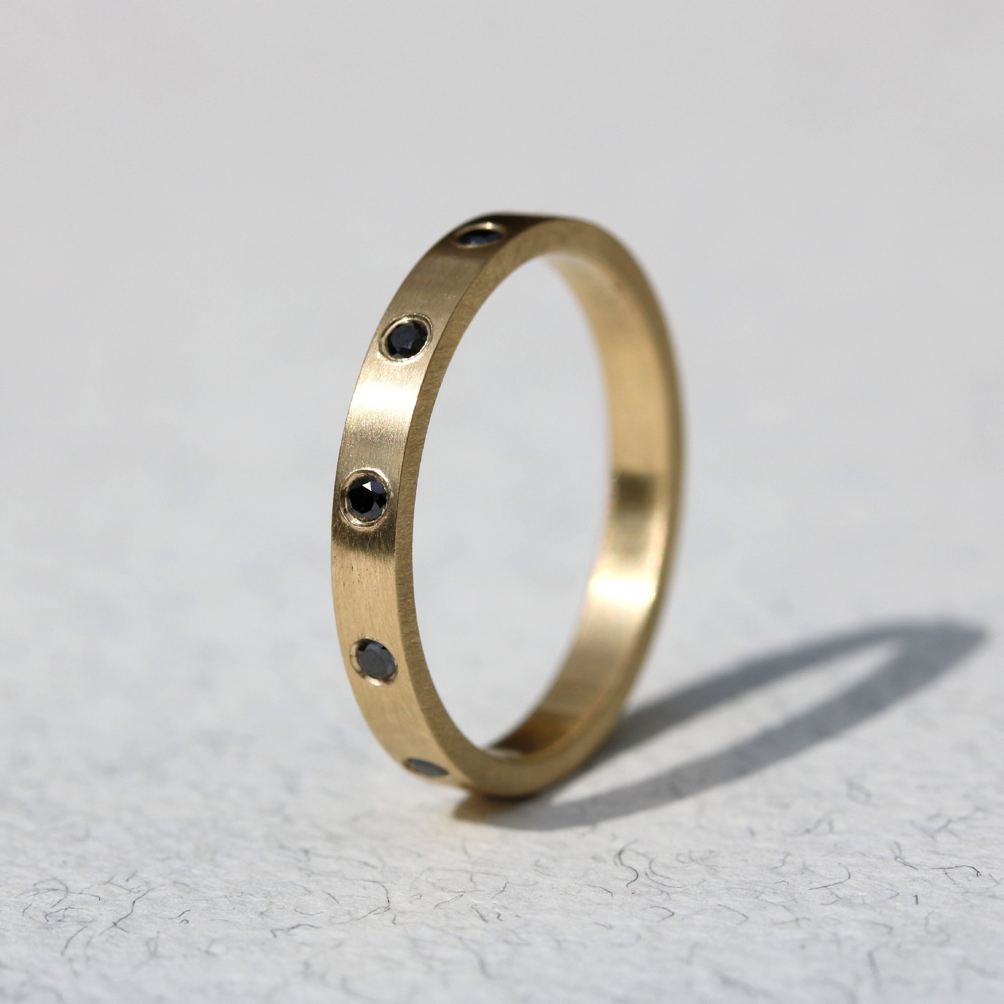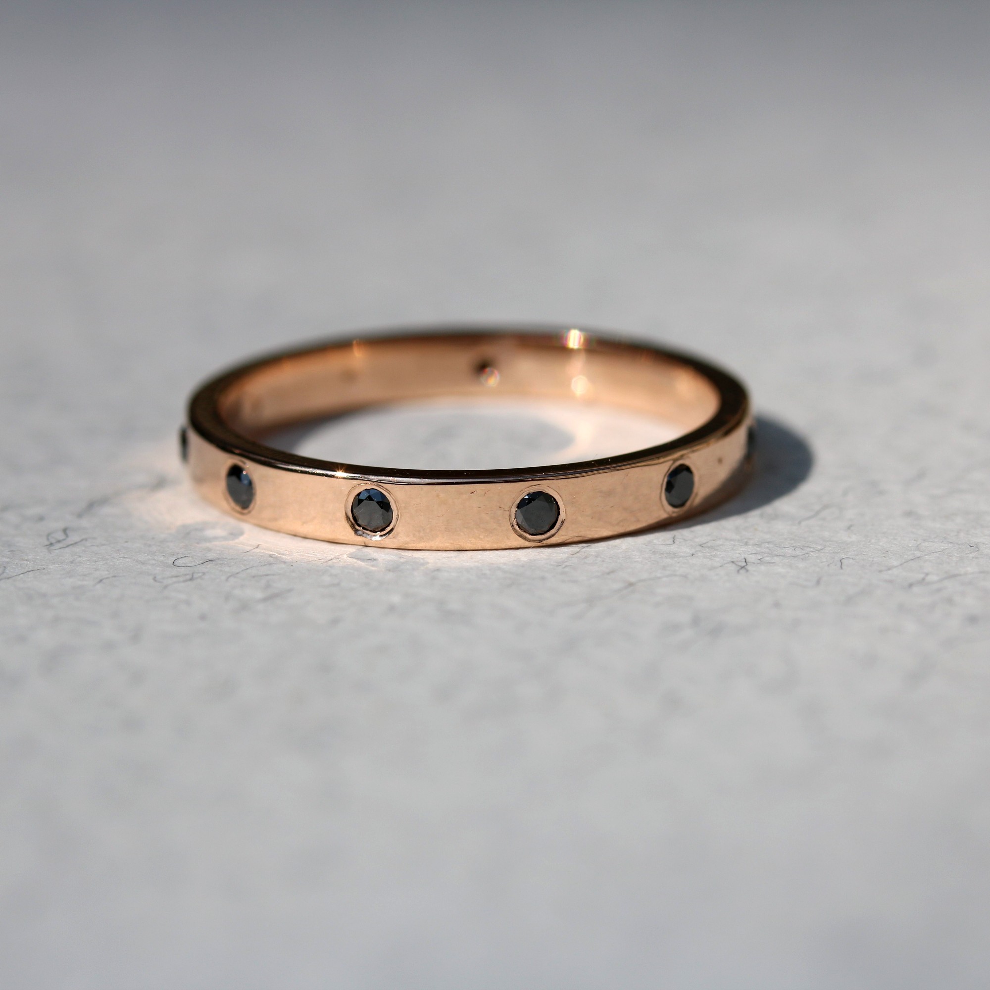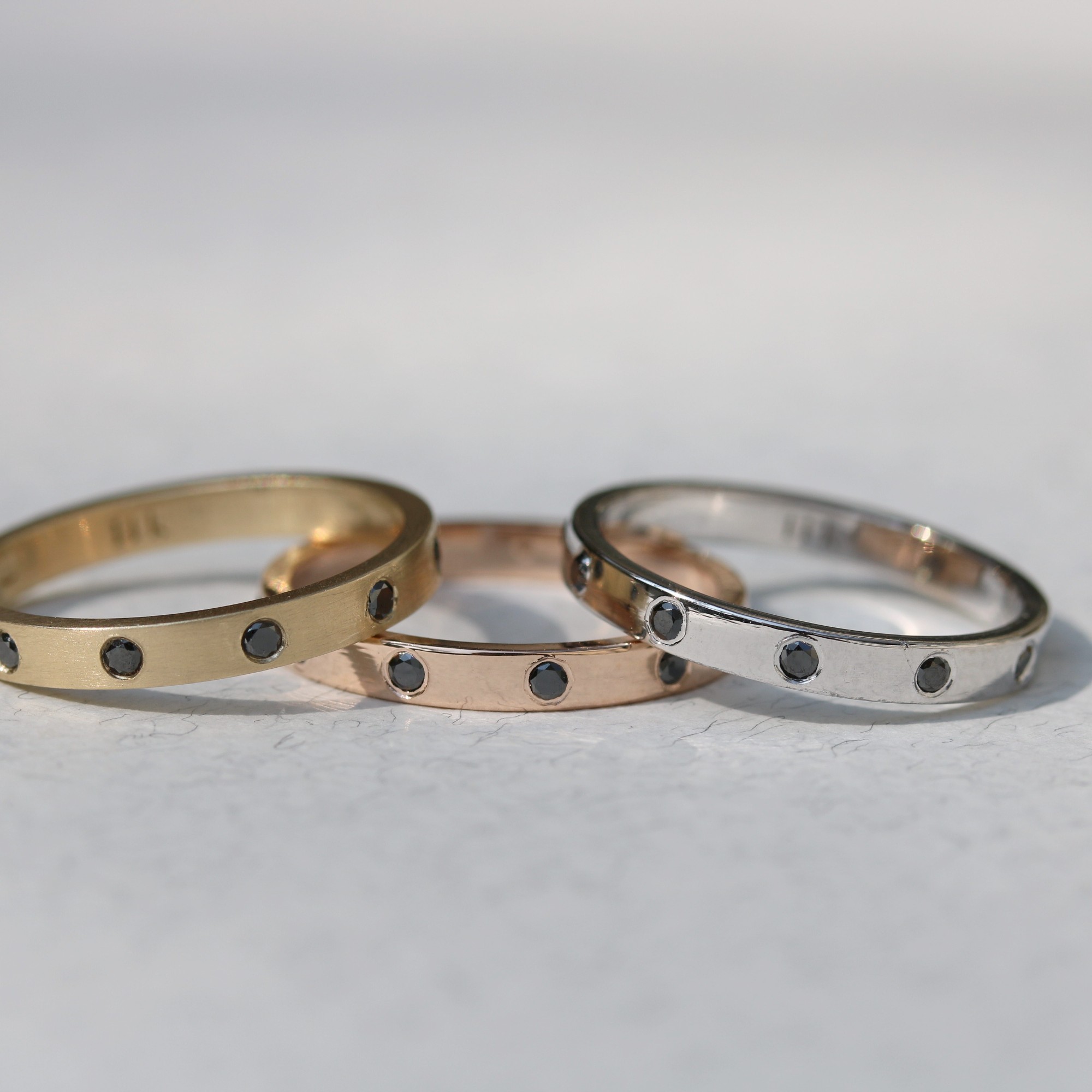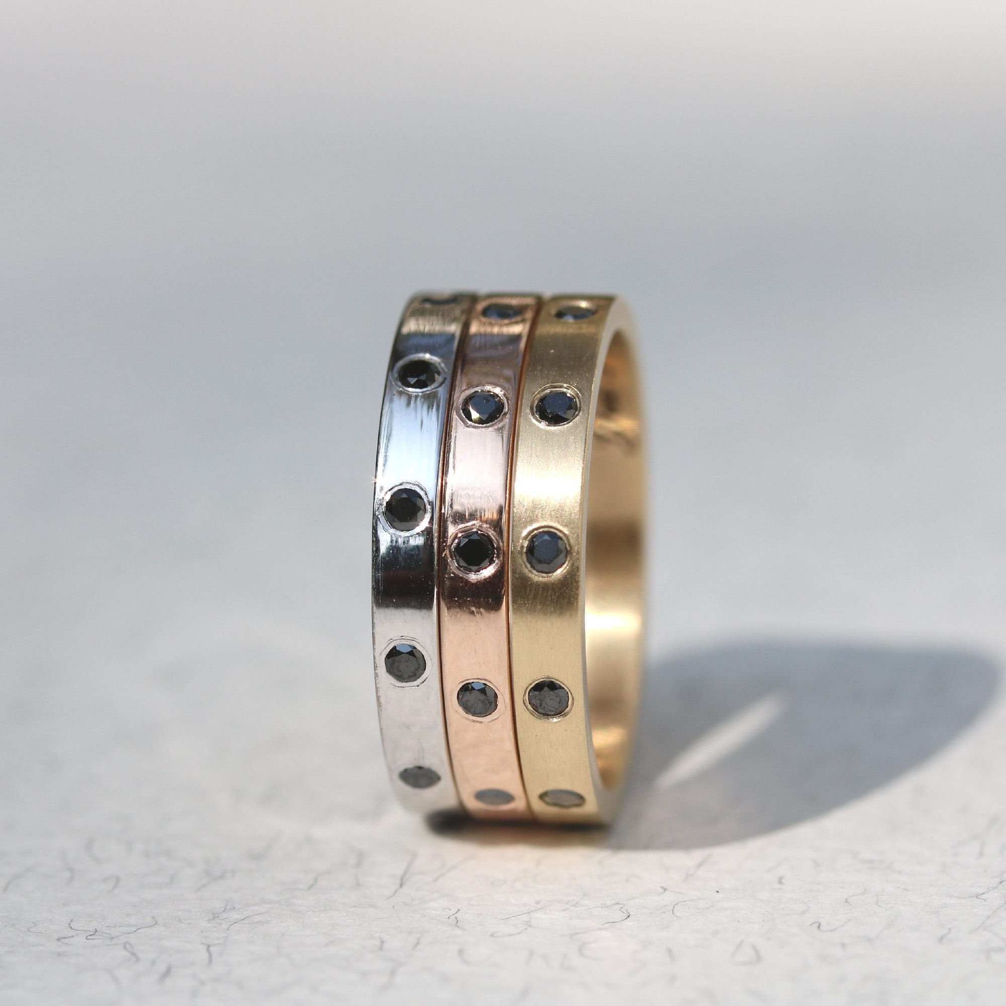 | טבעת בזהב 14K צהוב+לבן+ אדום משובצות יהלומים שחורים . |