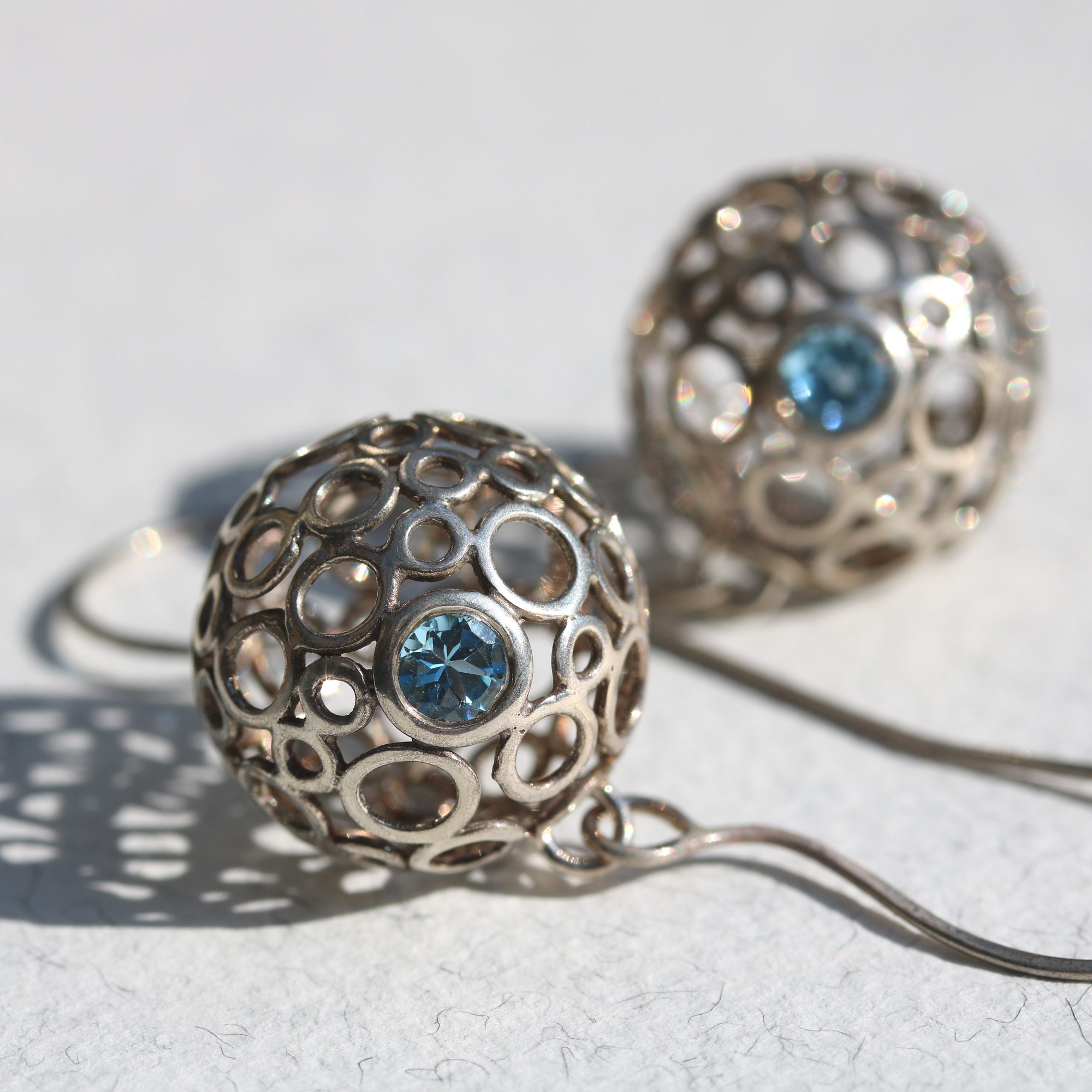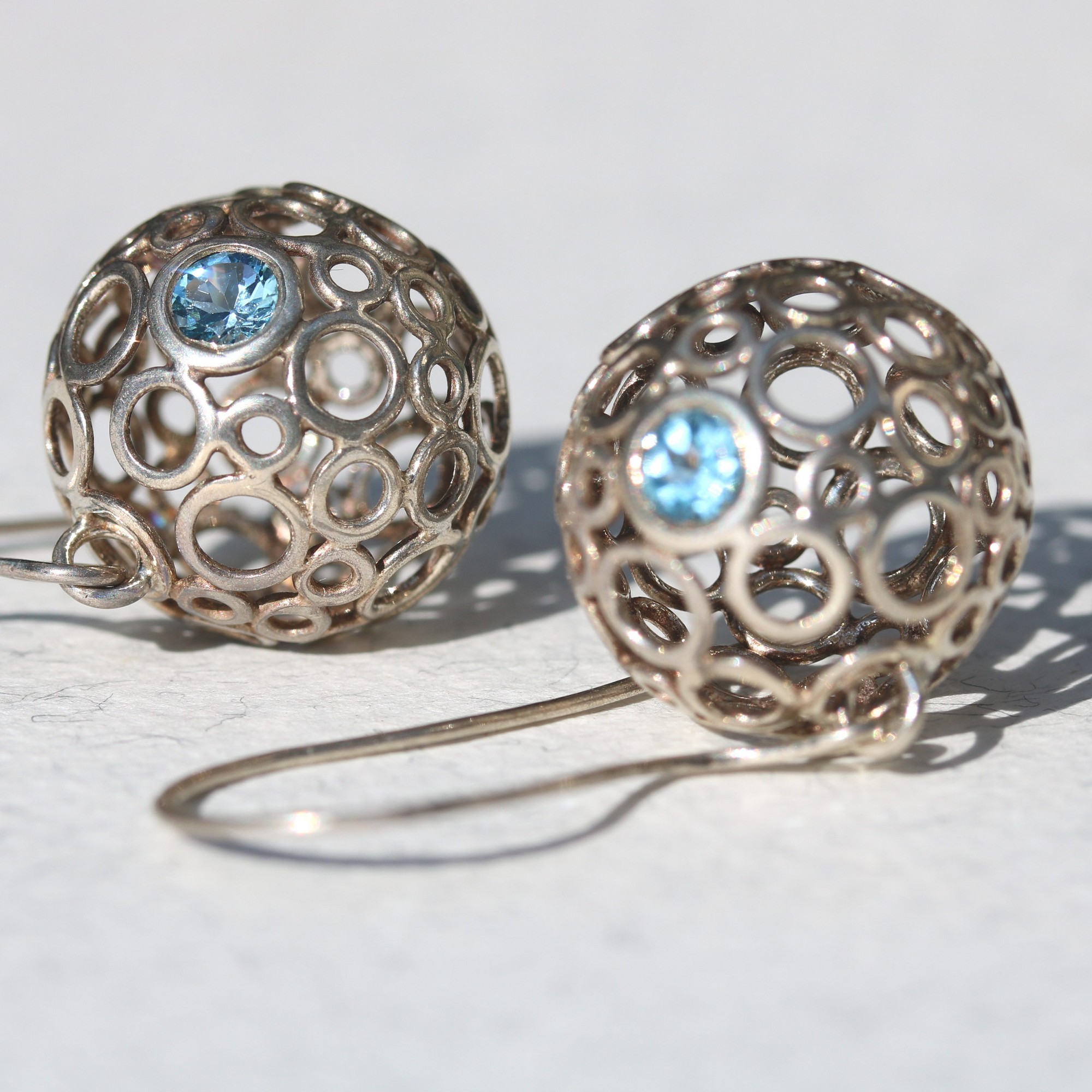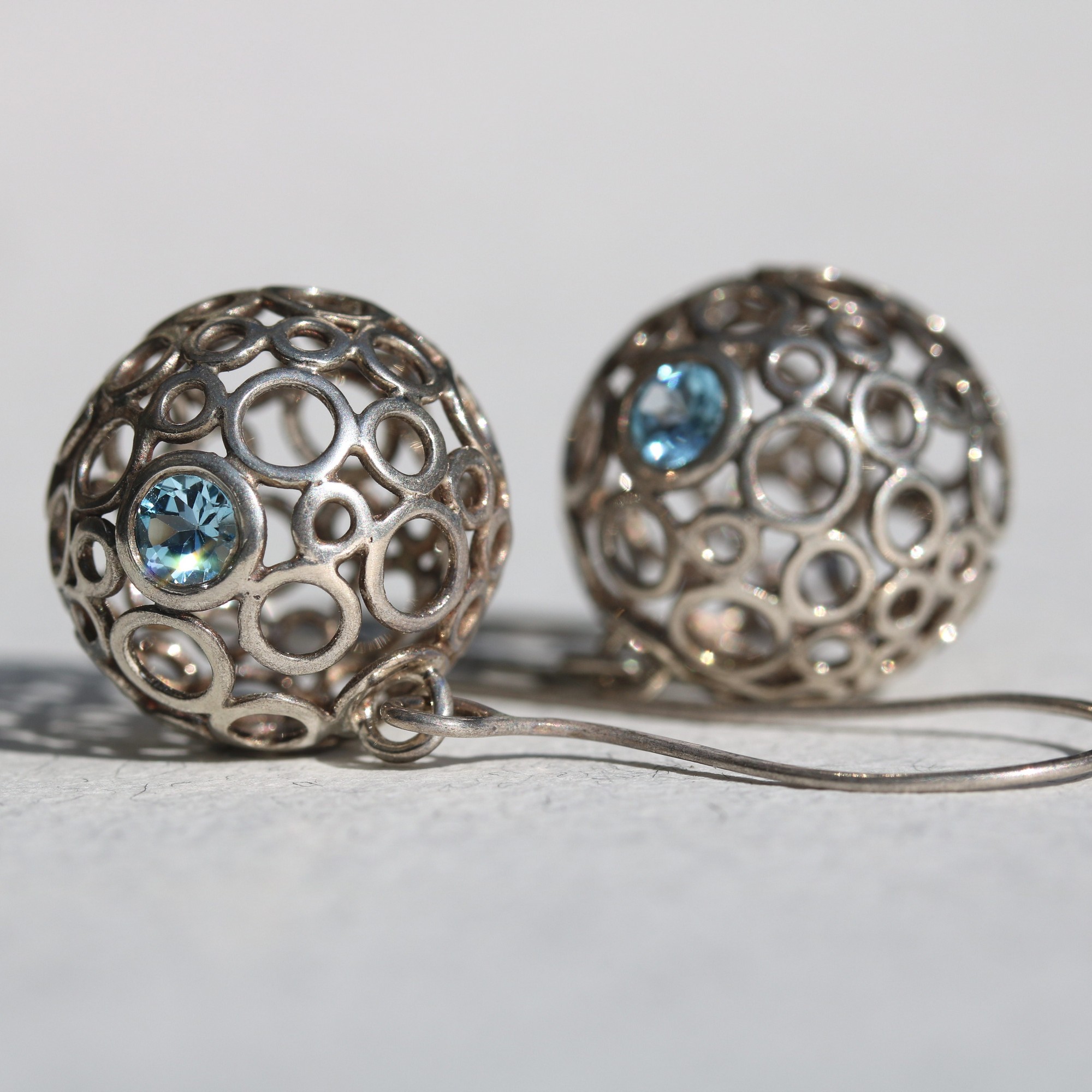 עגילי כדור מכסף בשיבוץ בלו טופז