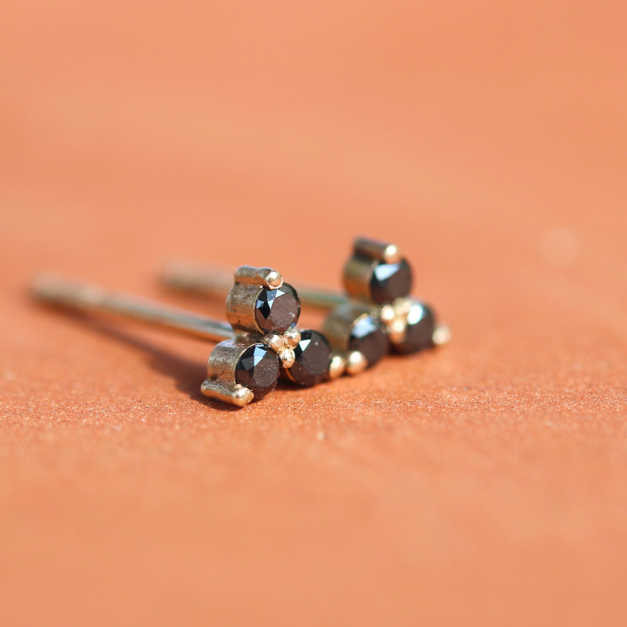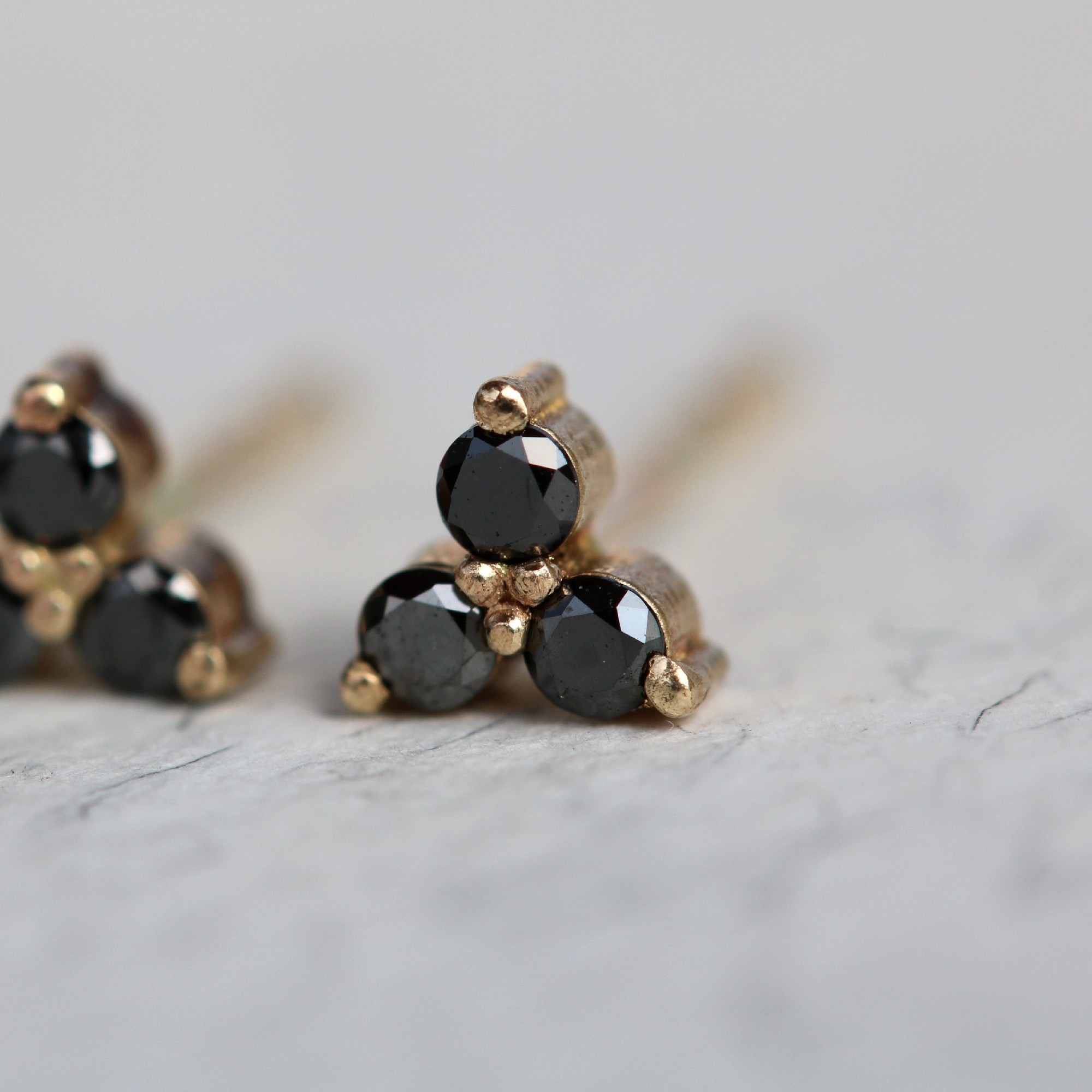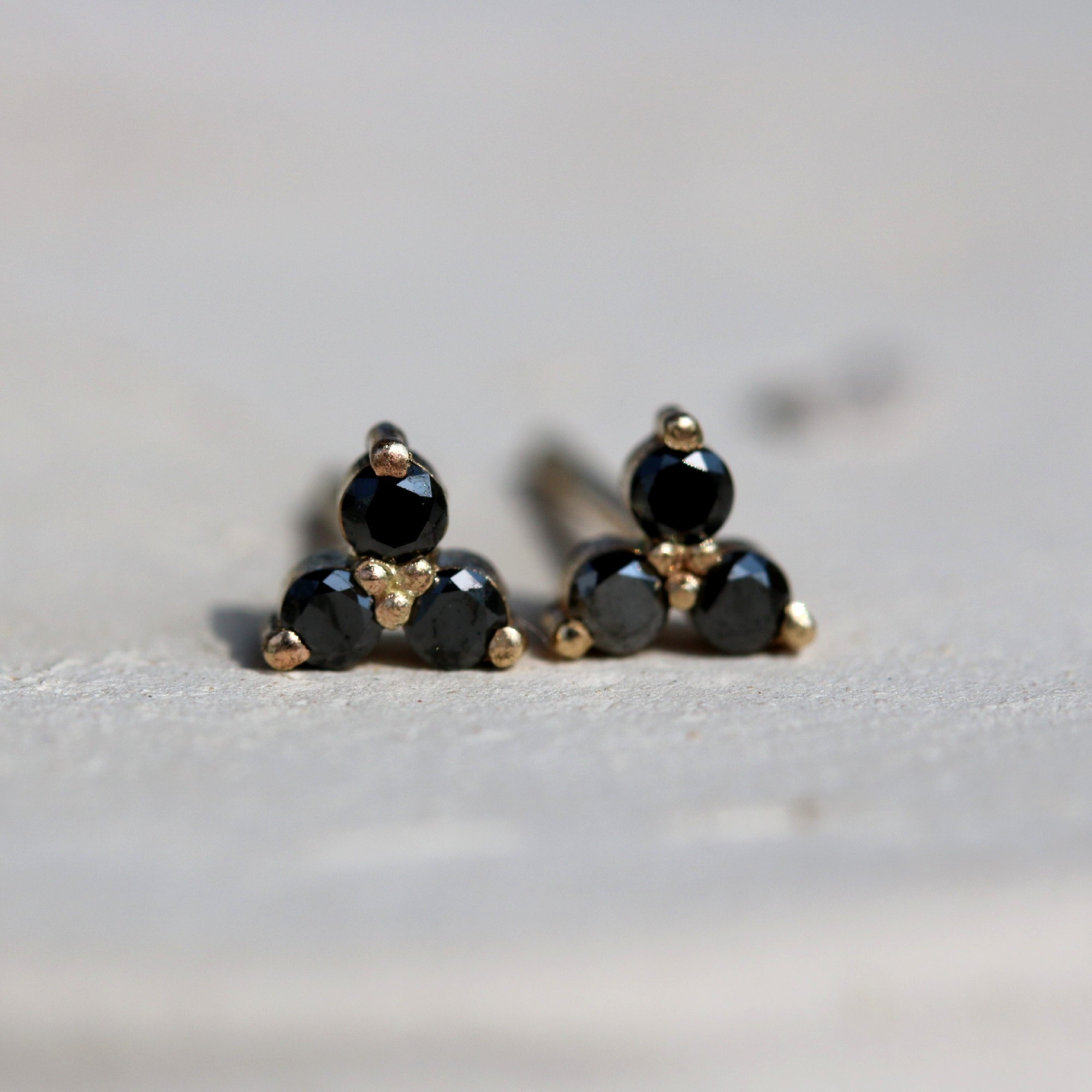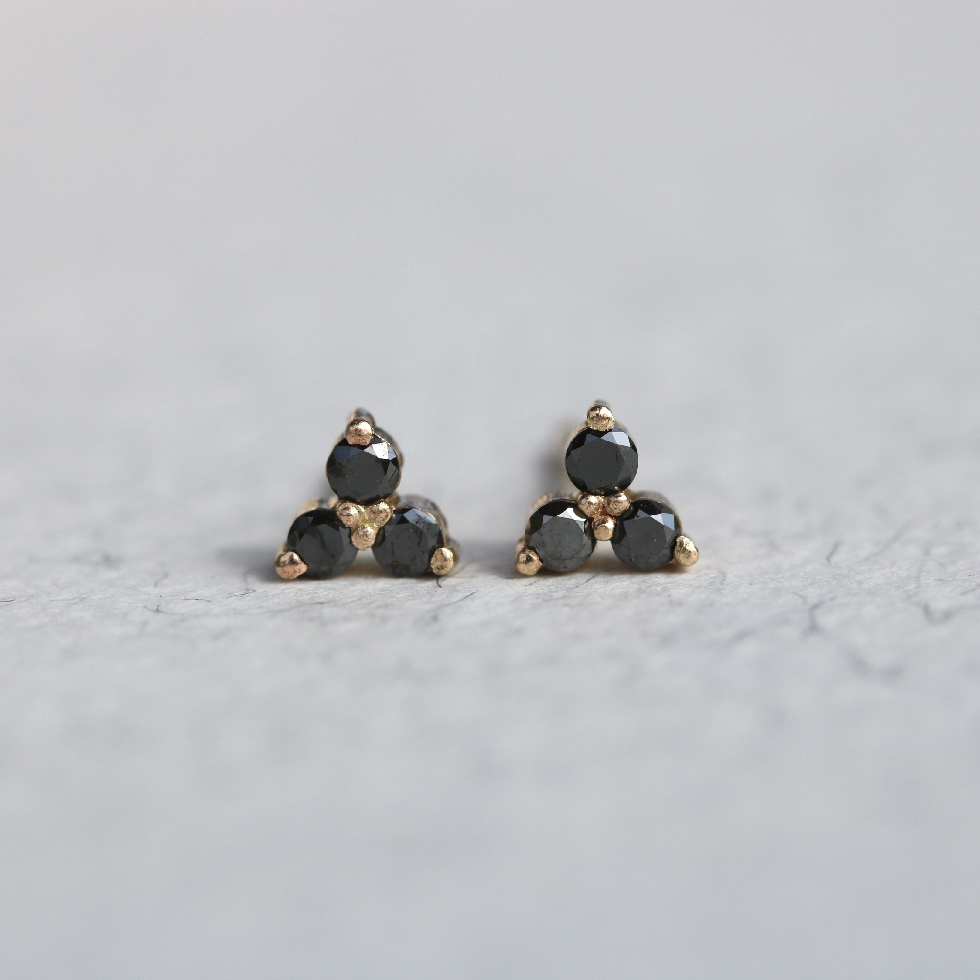 | עגילים צמודים בזהב צהוב 14K משובצים יהלומים שחורים. |