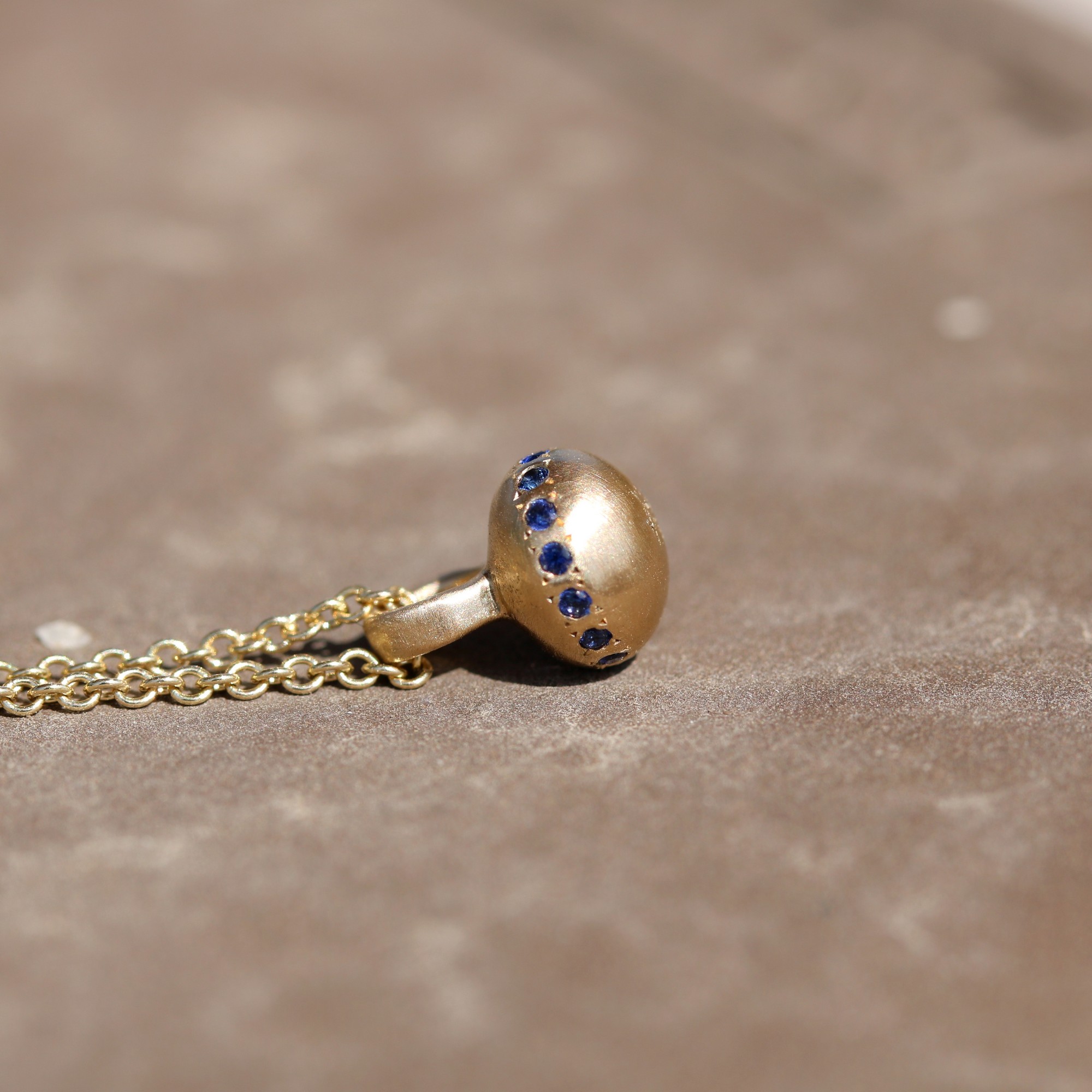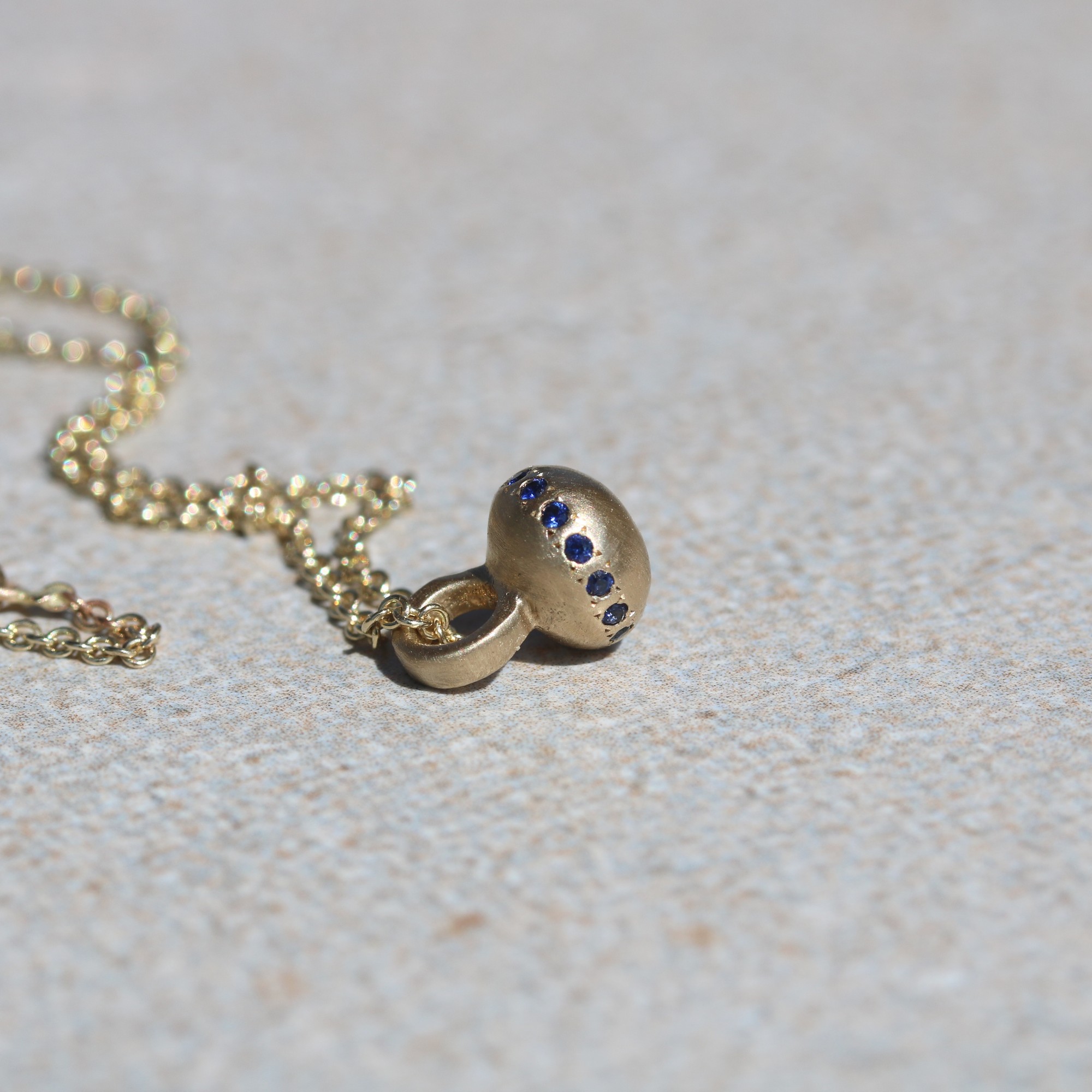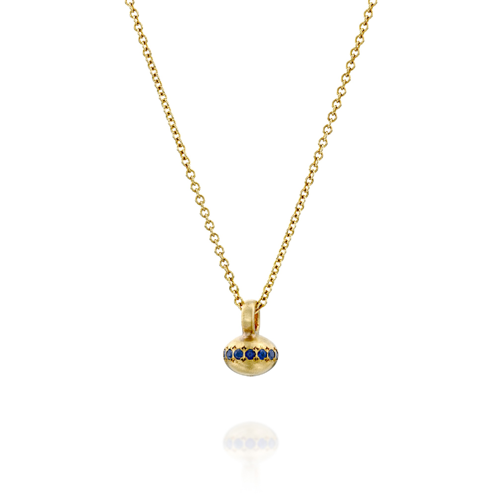 | תליון בזהב צהוב 14K בשיבוץ ספיר כחול עמוק. |