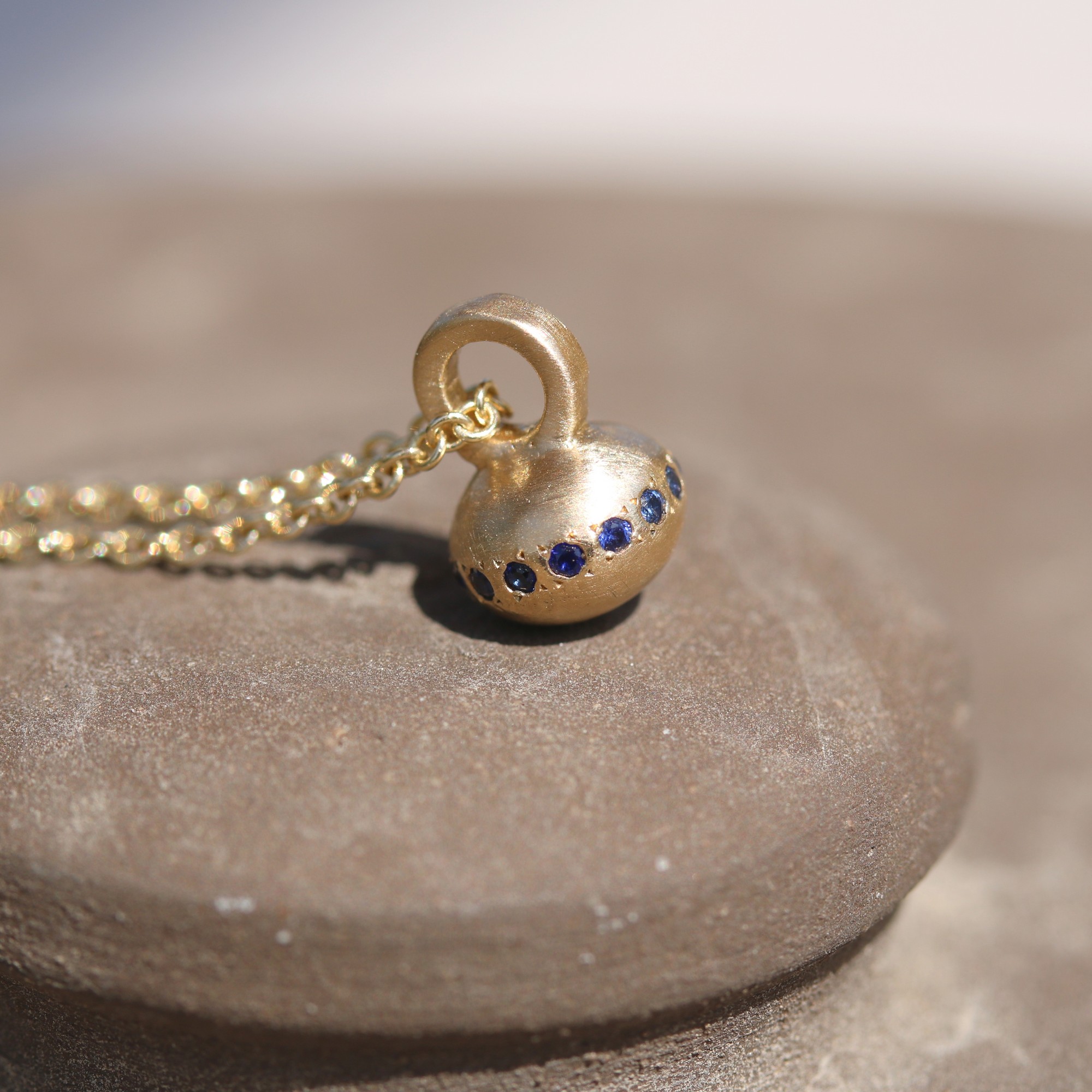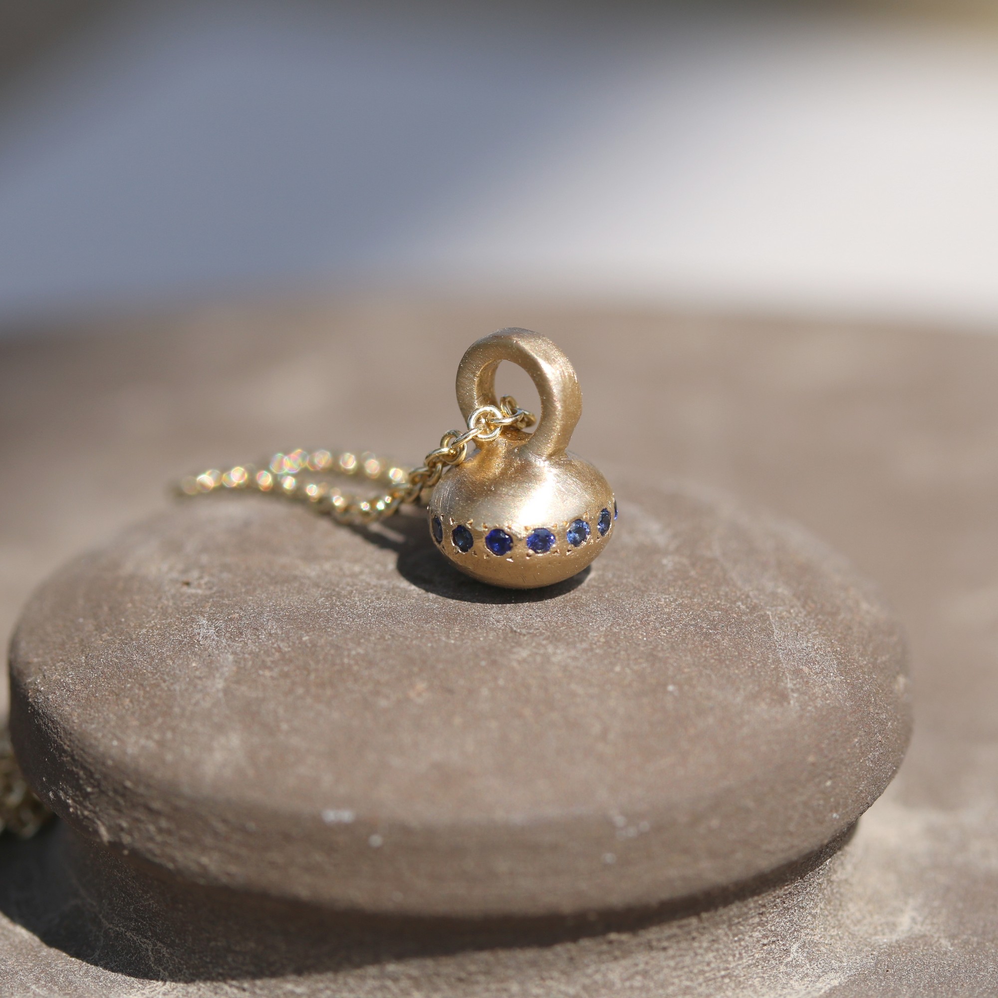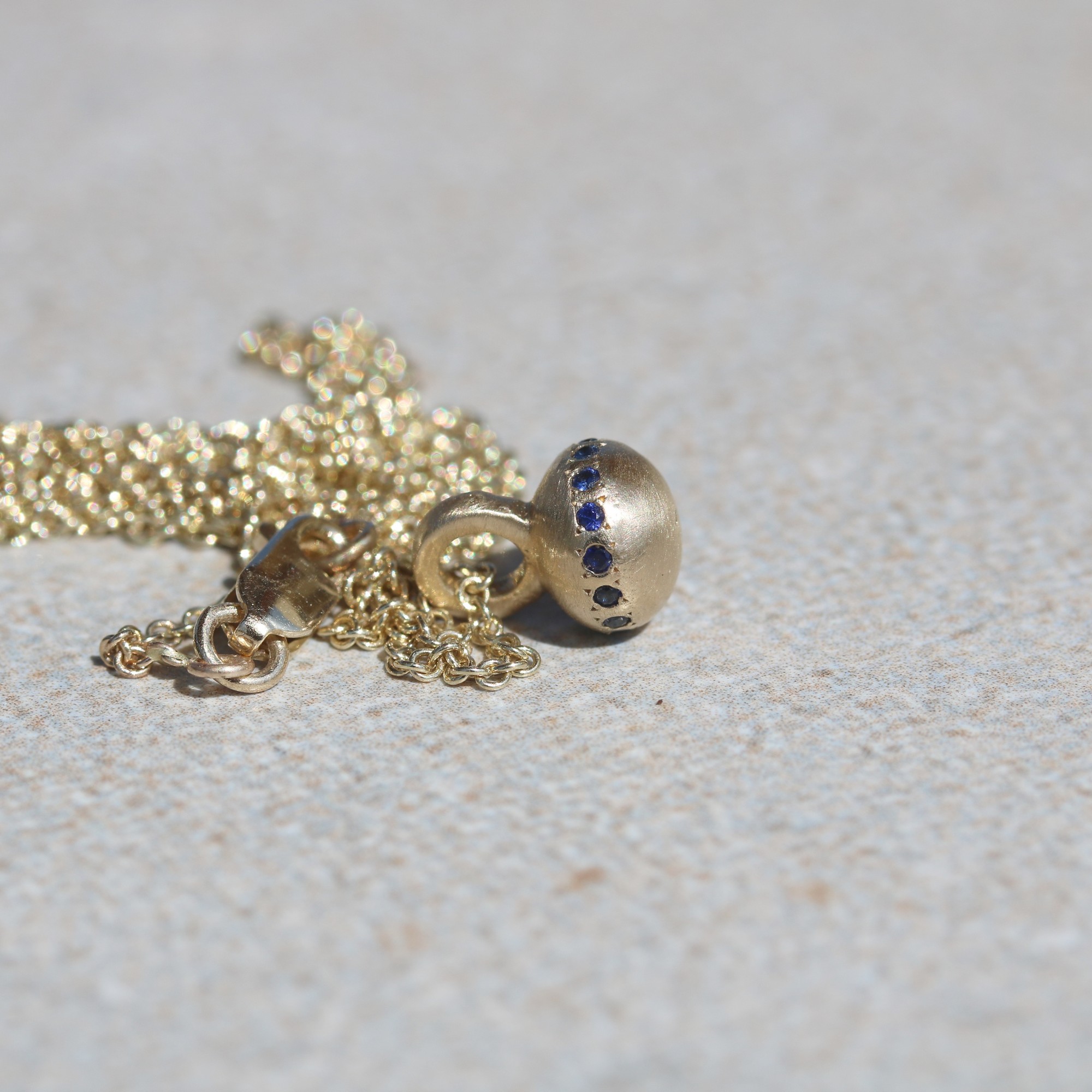 | תליון בזהב צהוב 14K בשיבוץ ספיר כחול עמוק. |