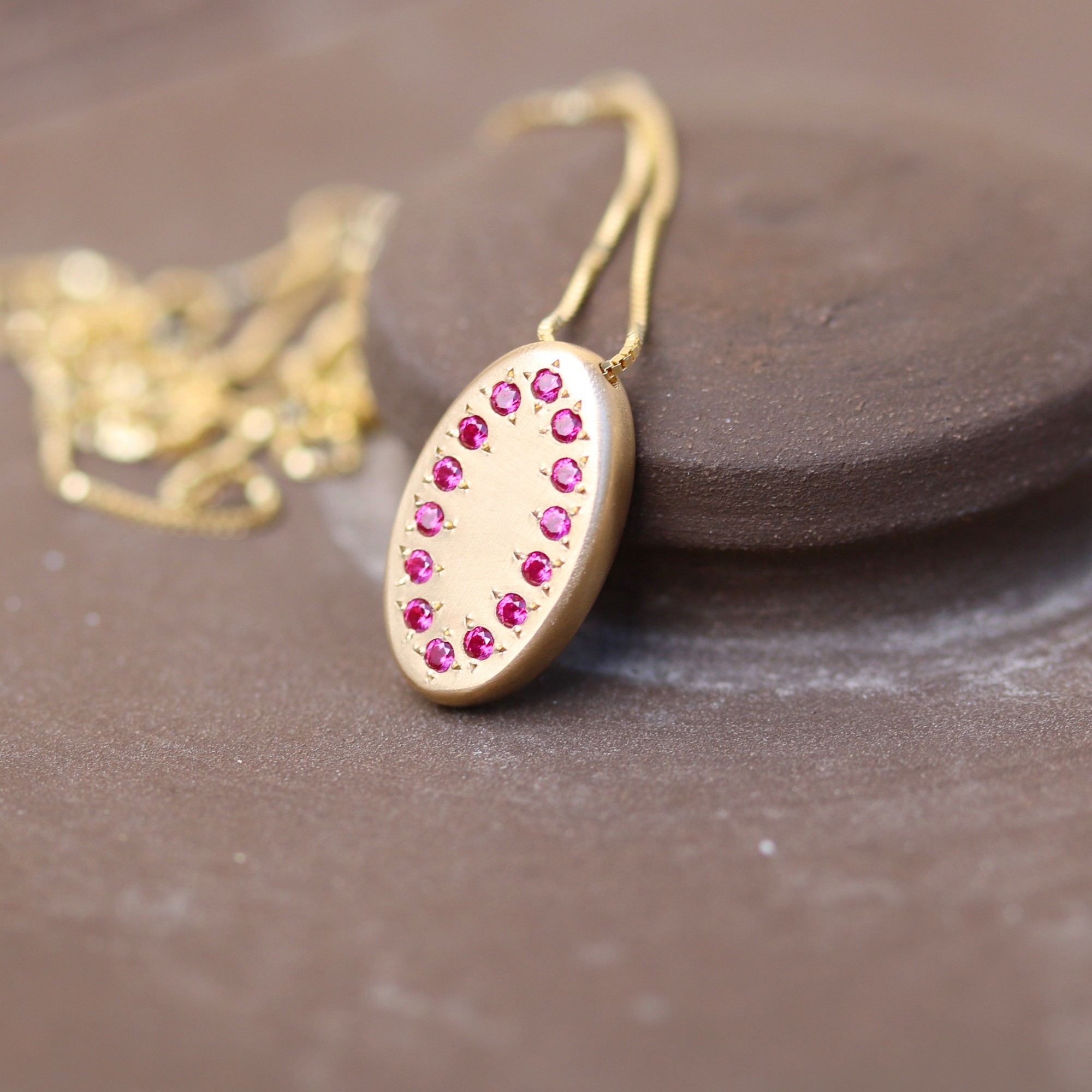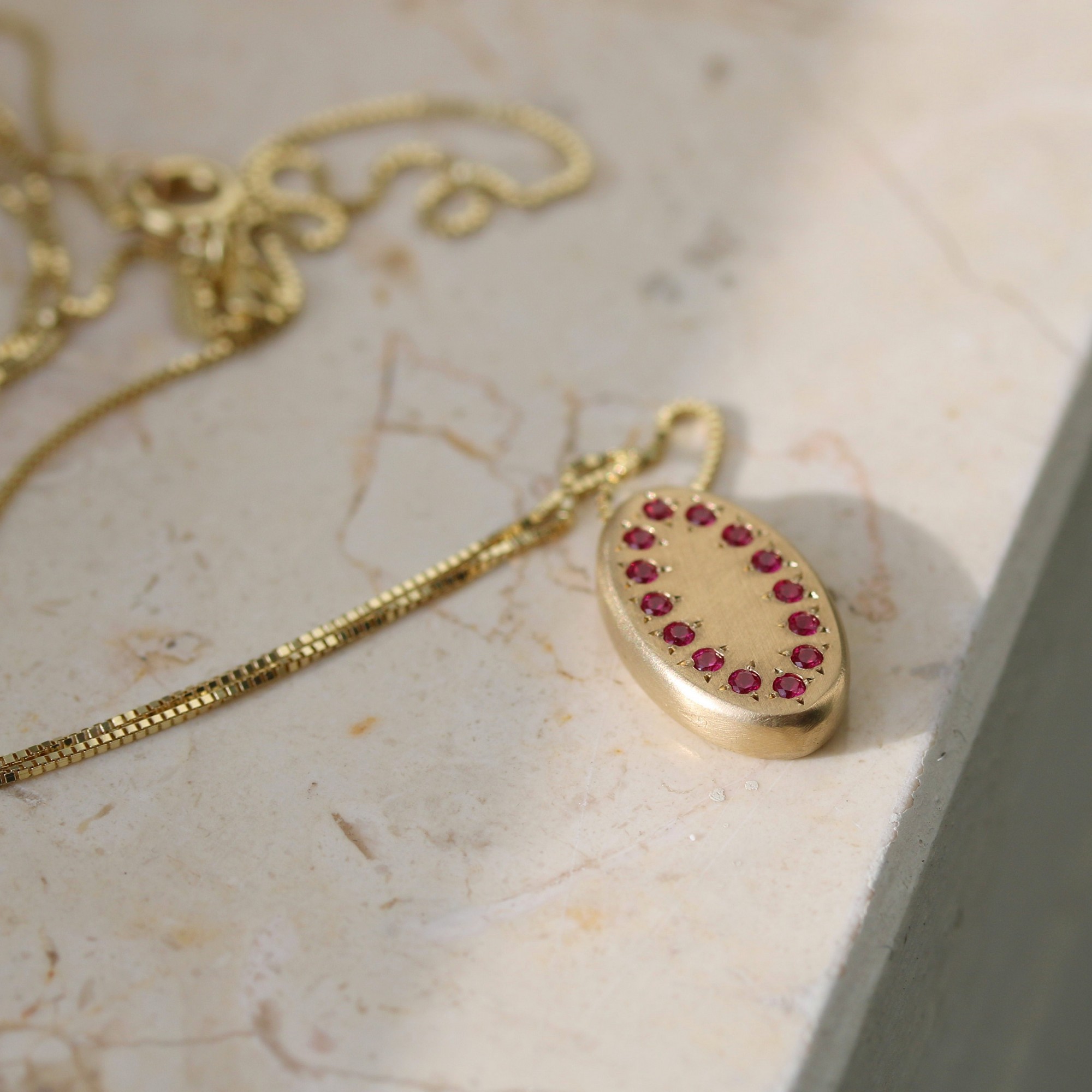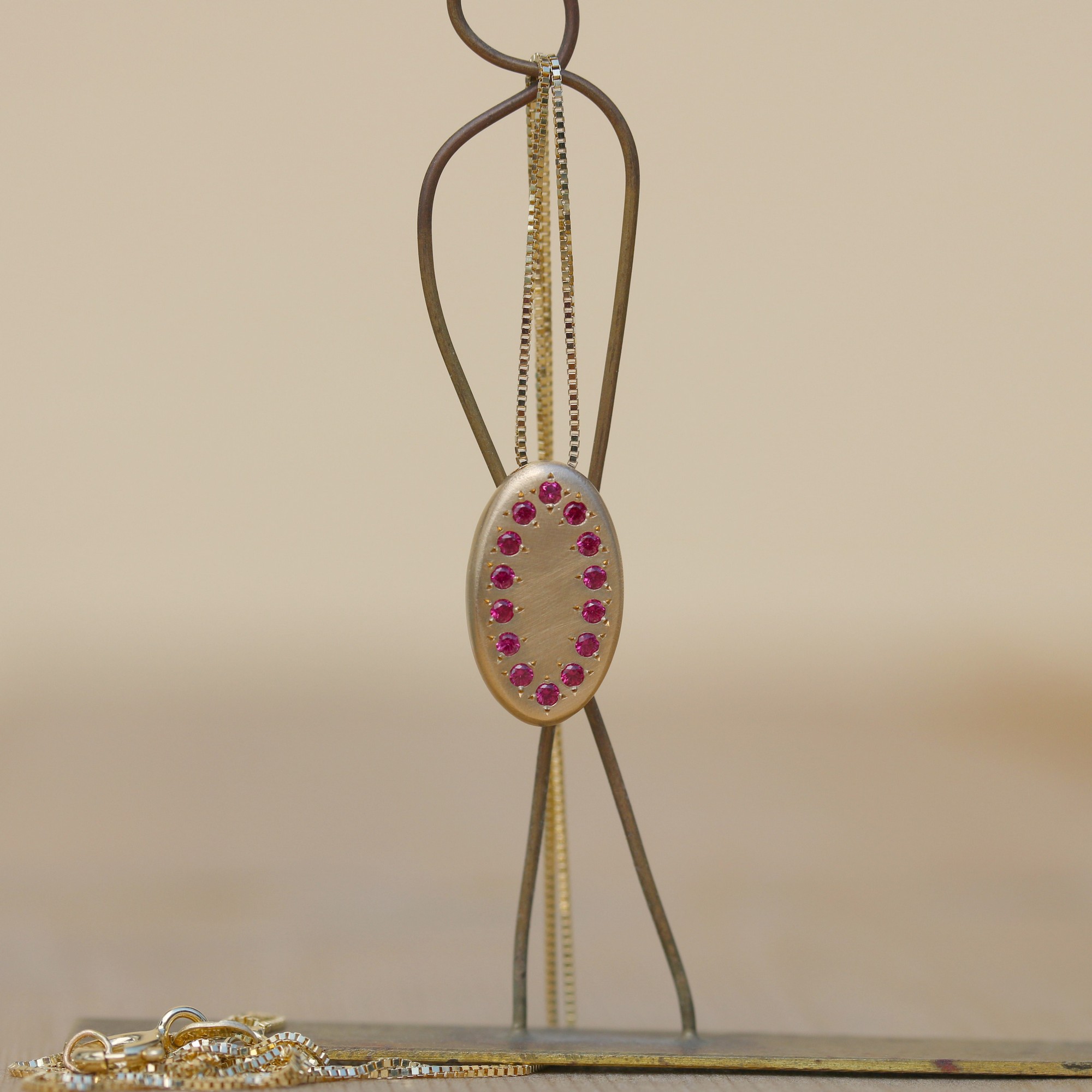 | תליון בזהב צהוב 14K בשיבוץ אבני רובי. |