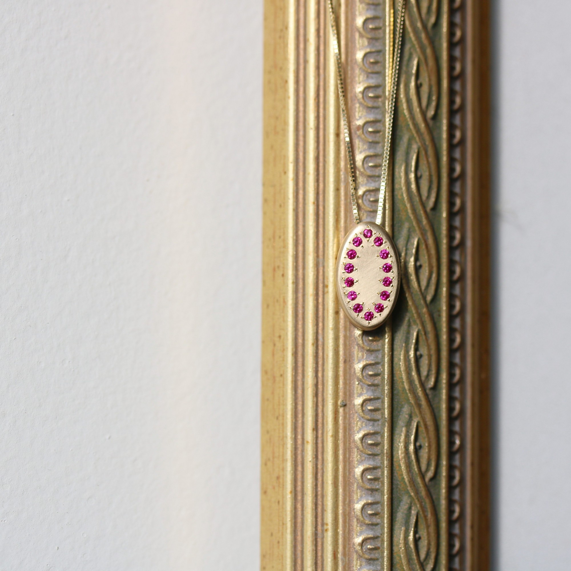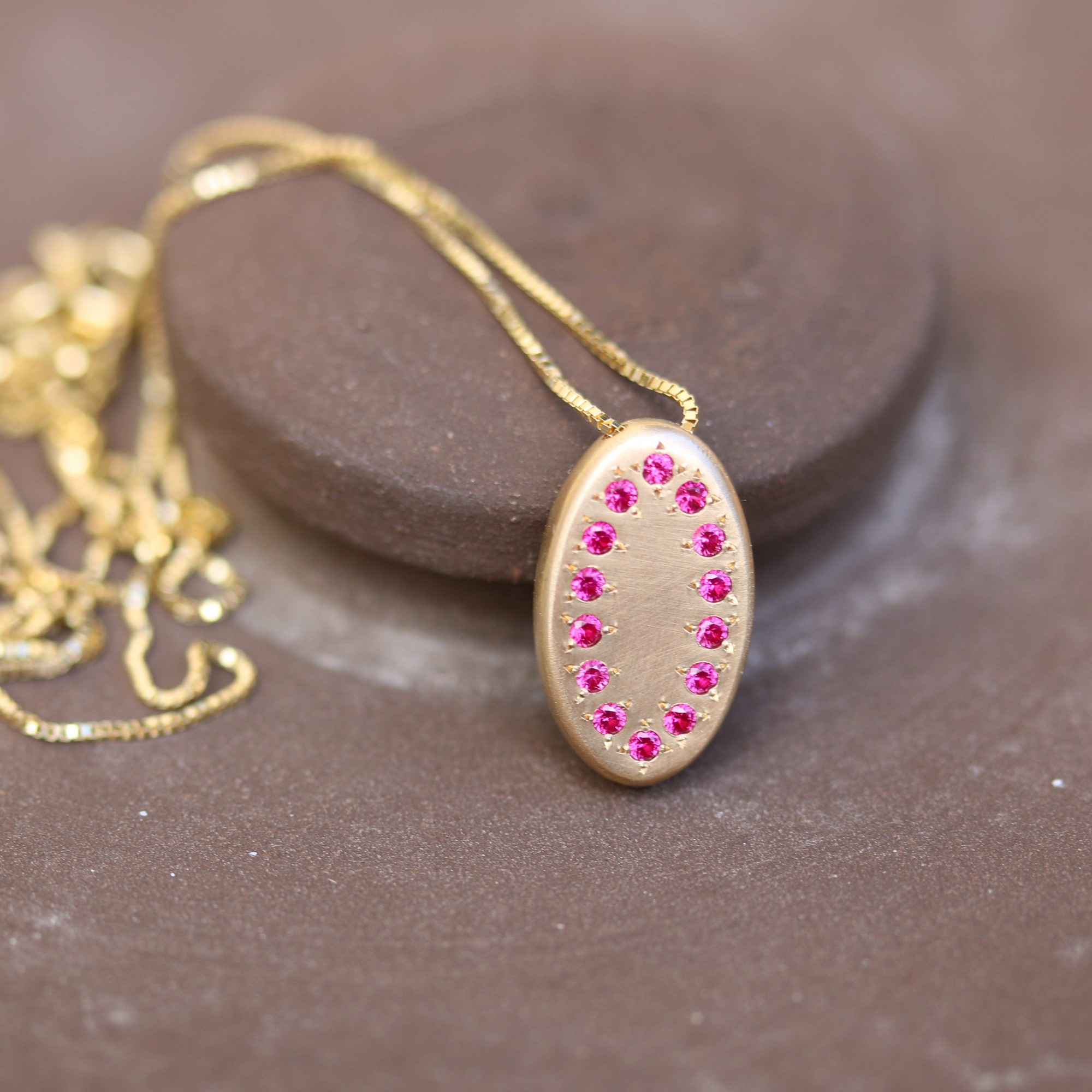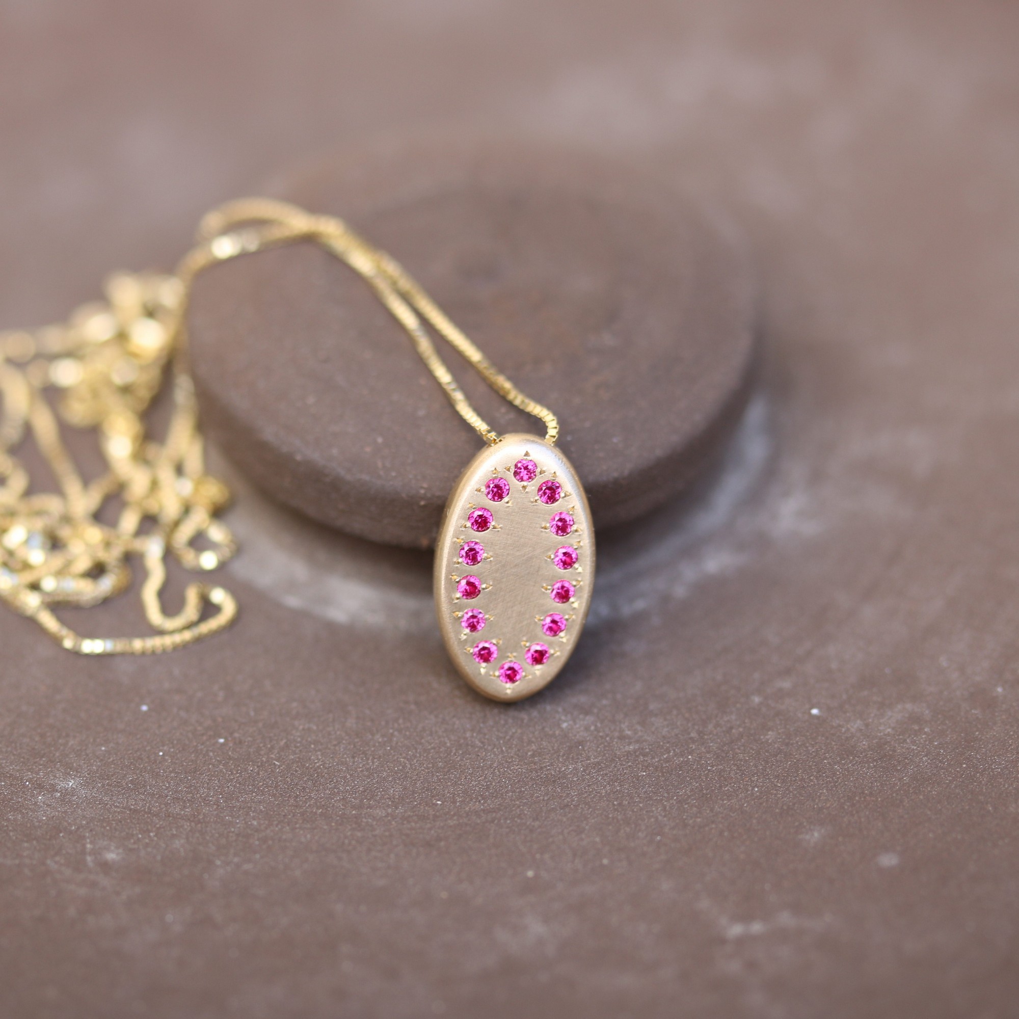 | תליון בזהב צהוב 14K בשיבוץ אבני רובי. |