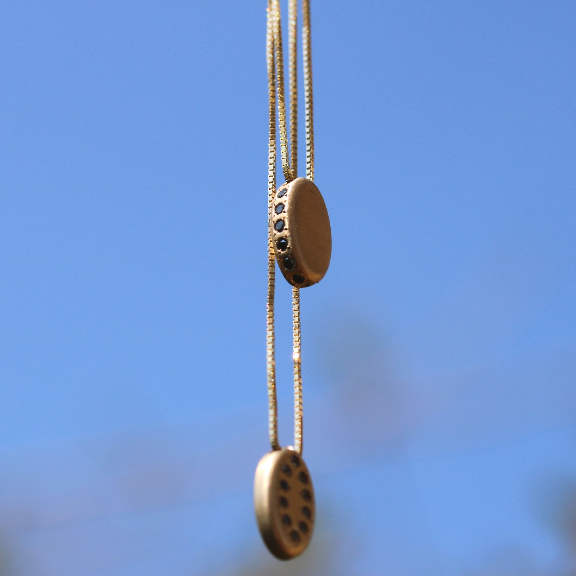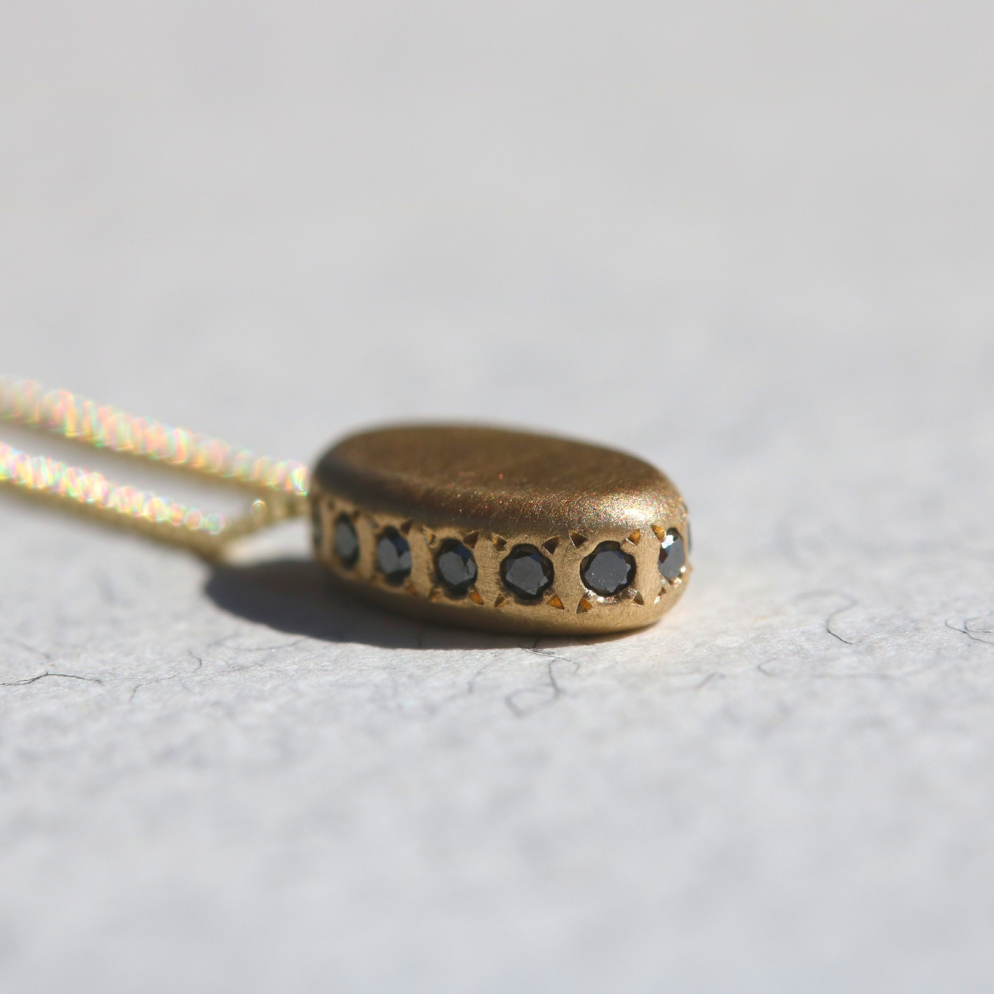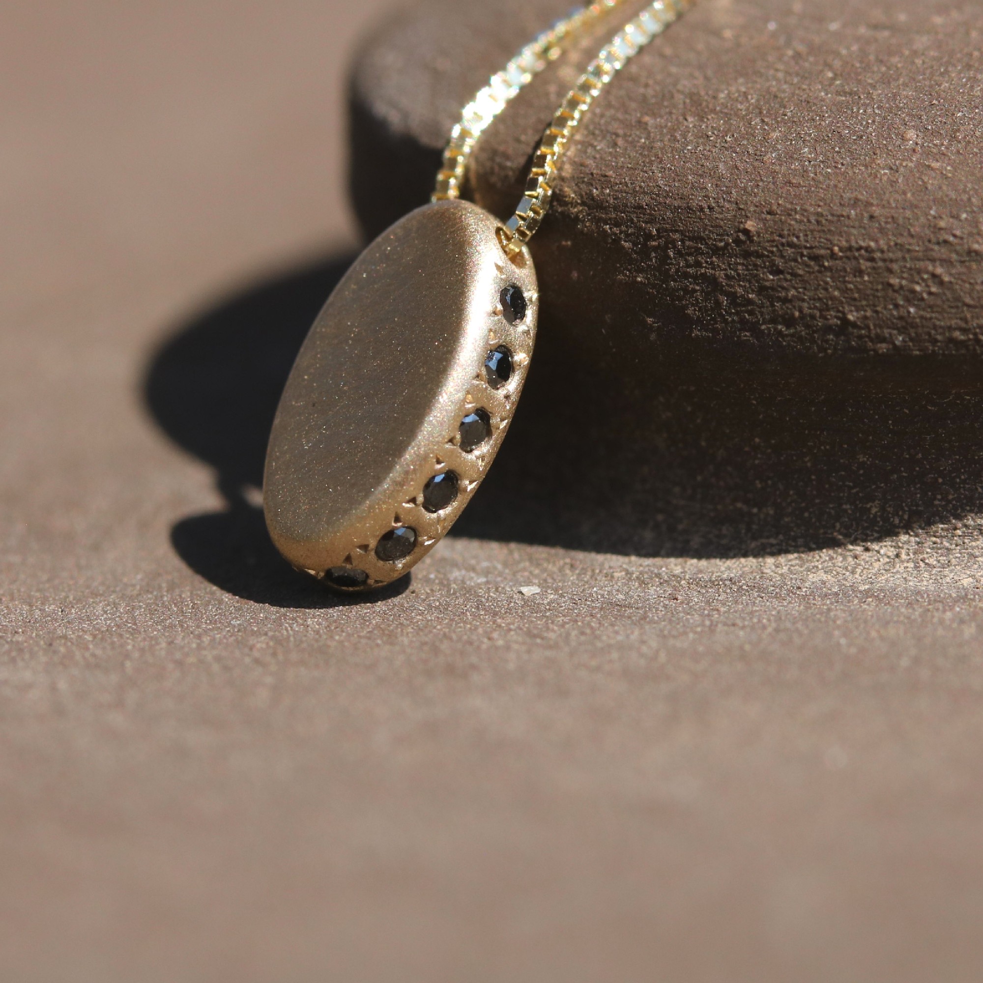 | תליון בזהב צהוב 14K בשיבוץ יהלומים שחורים. |