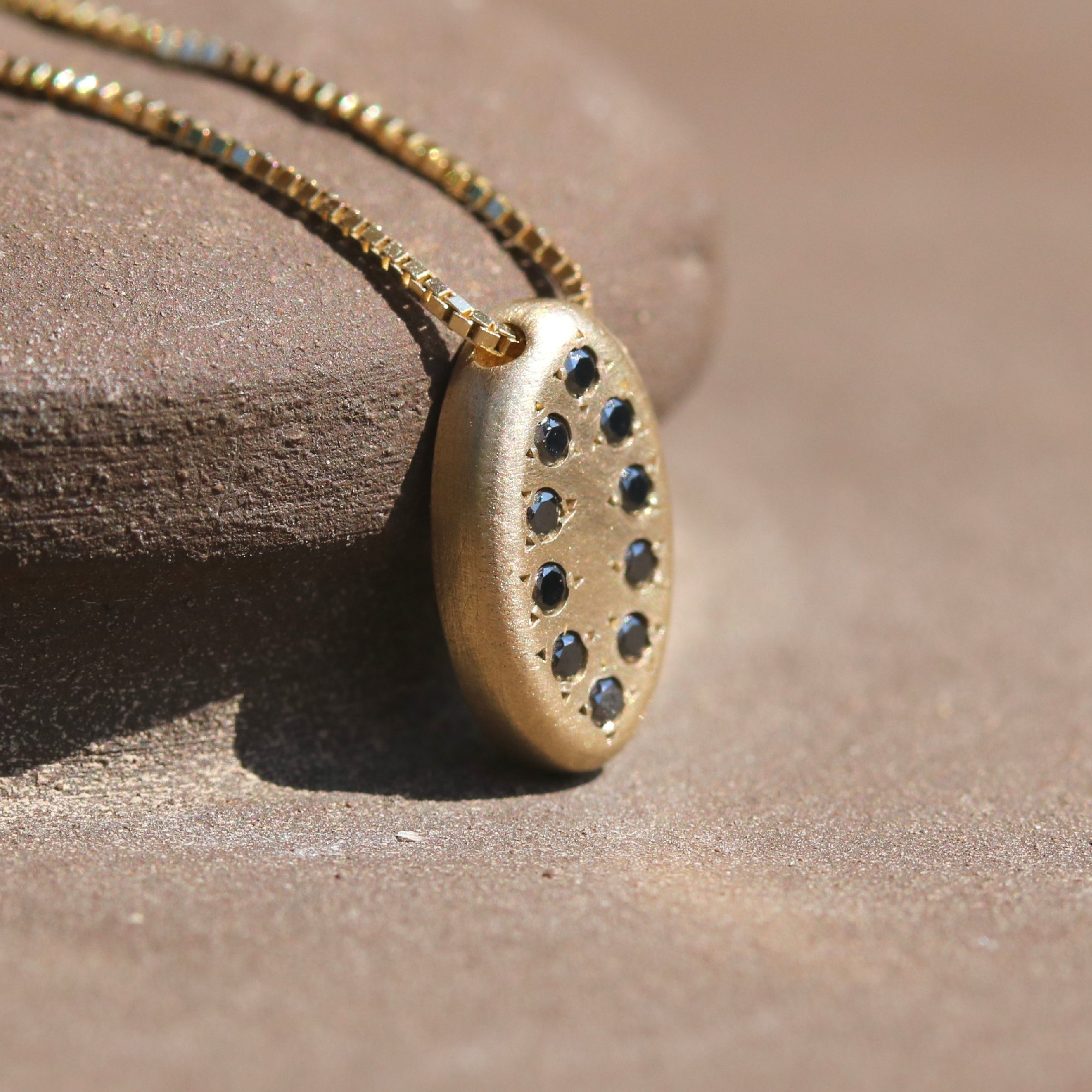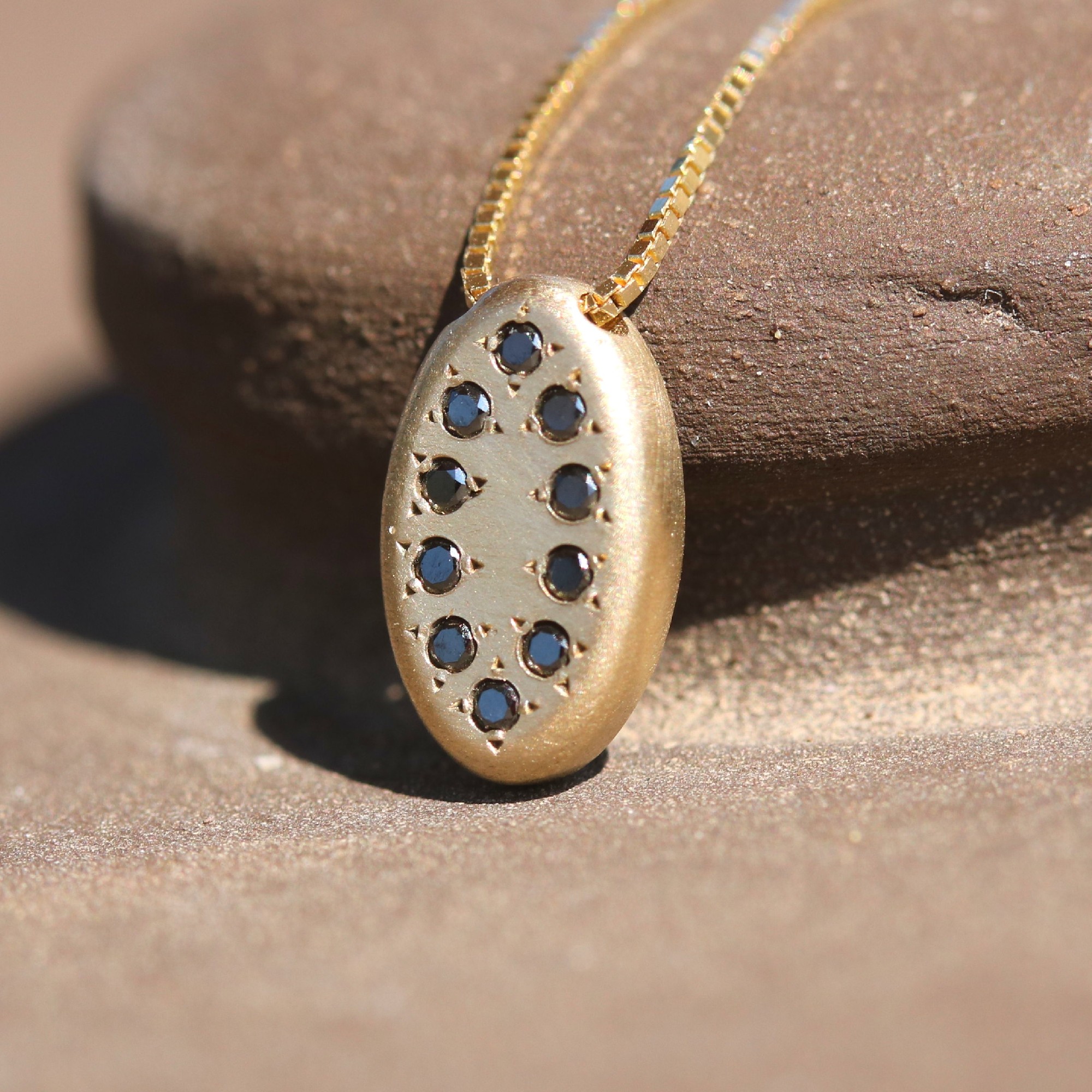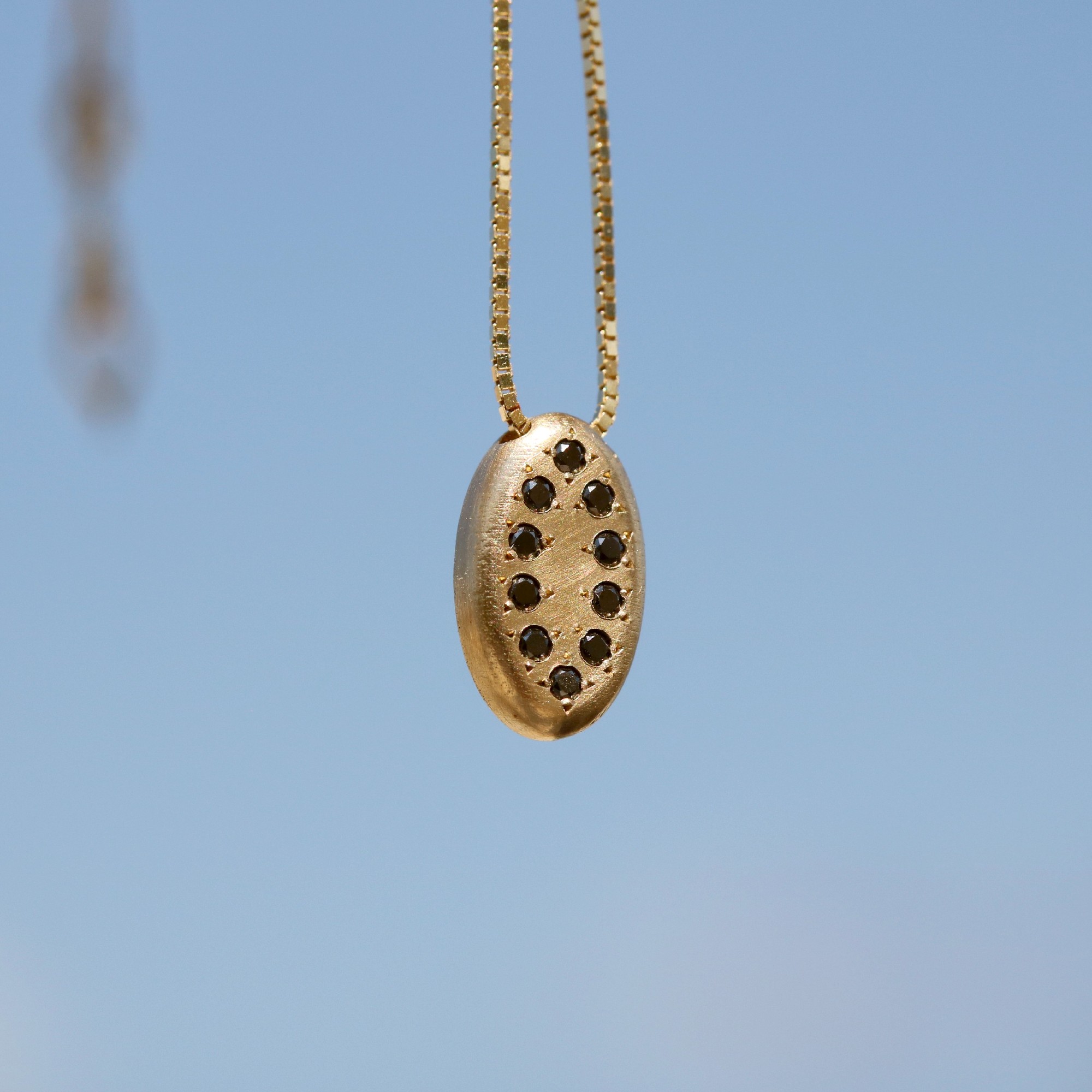 | תליון בזהב צהוב 14K בשיבוץ יהלומים שחורים. |