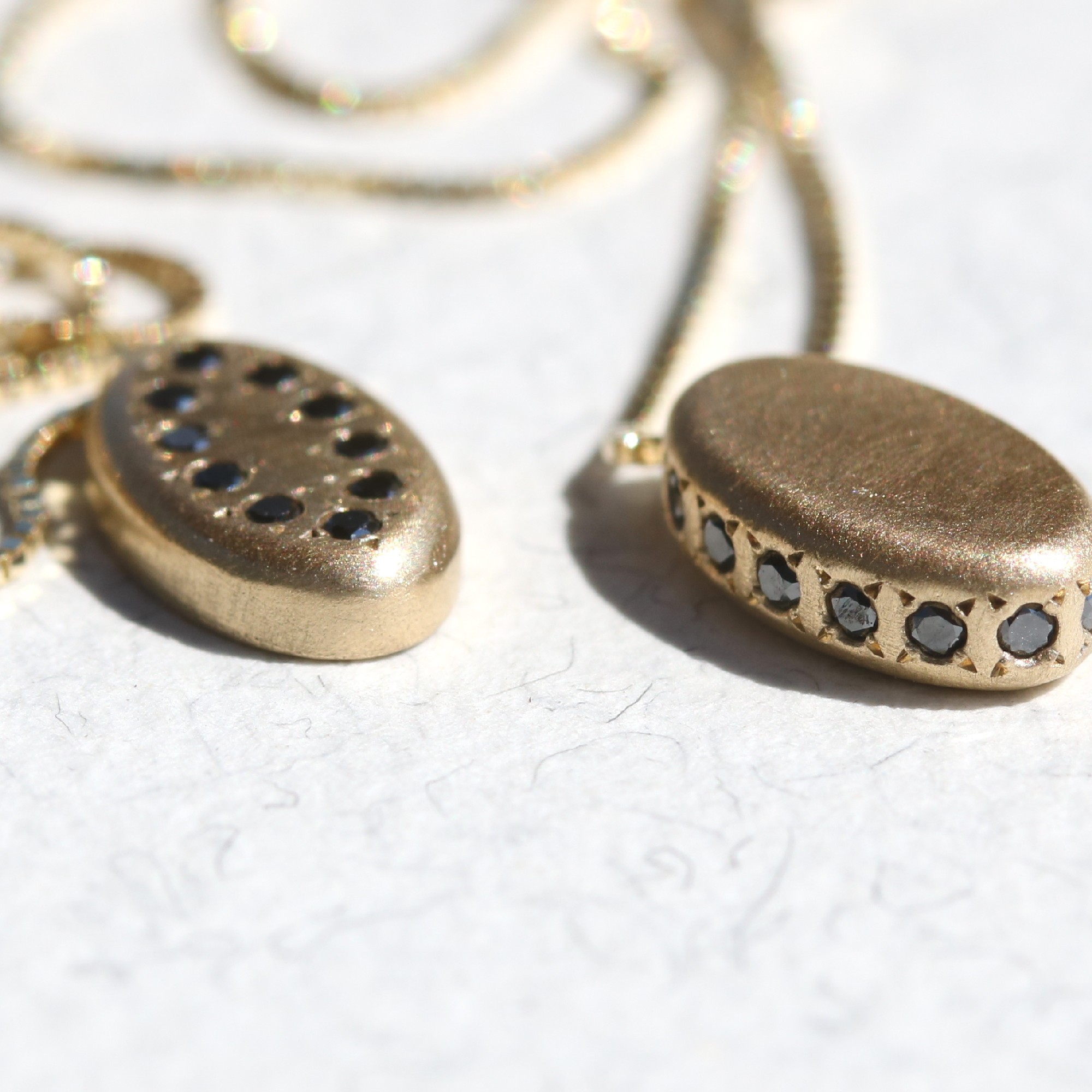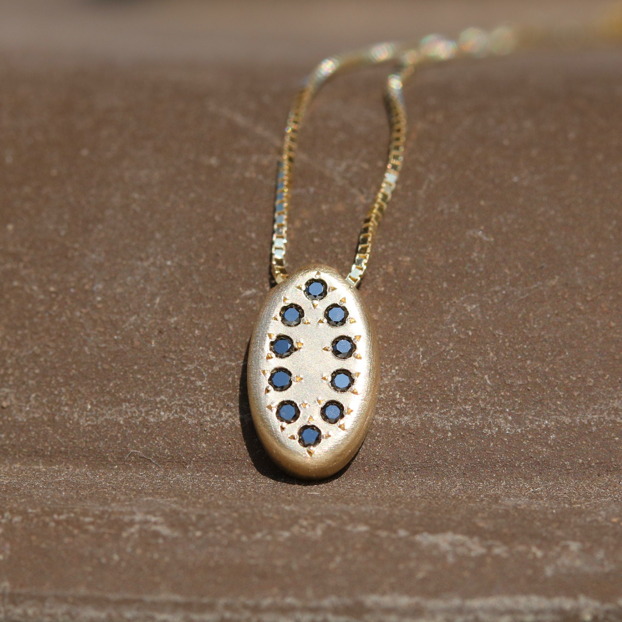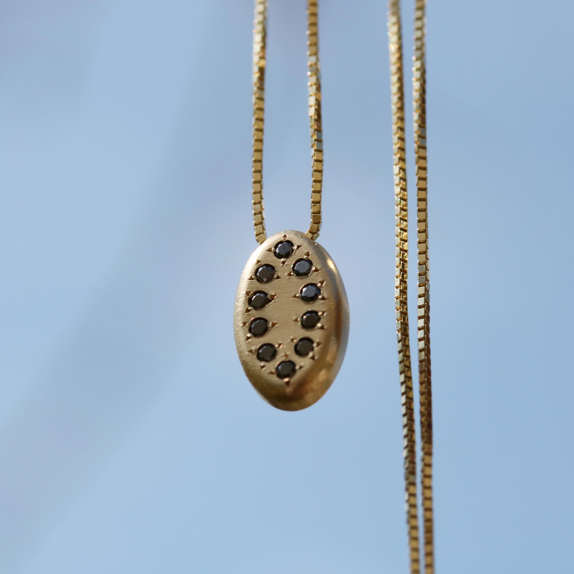 | תליון בזהב צהוב 14K בשיבוץ יהלומים שחורים. |