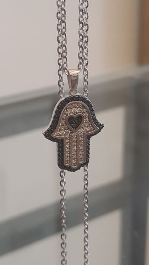 תליון חמסה בזהב "שחור לבן" Black&white Hamsa pendant 14k