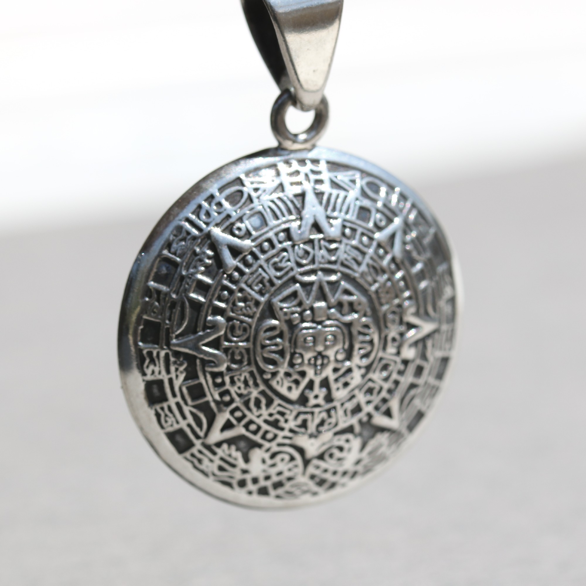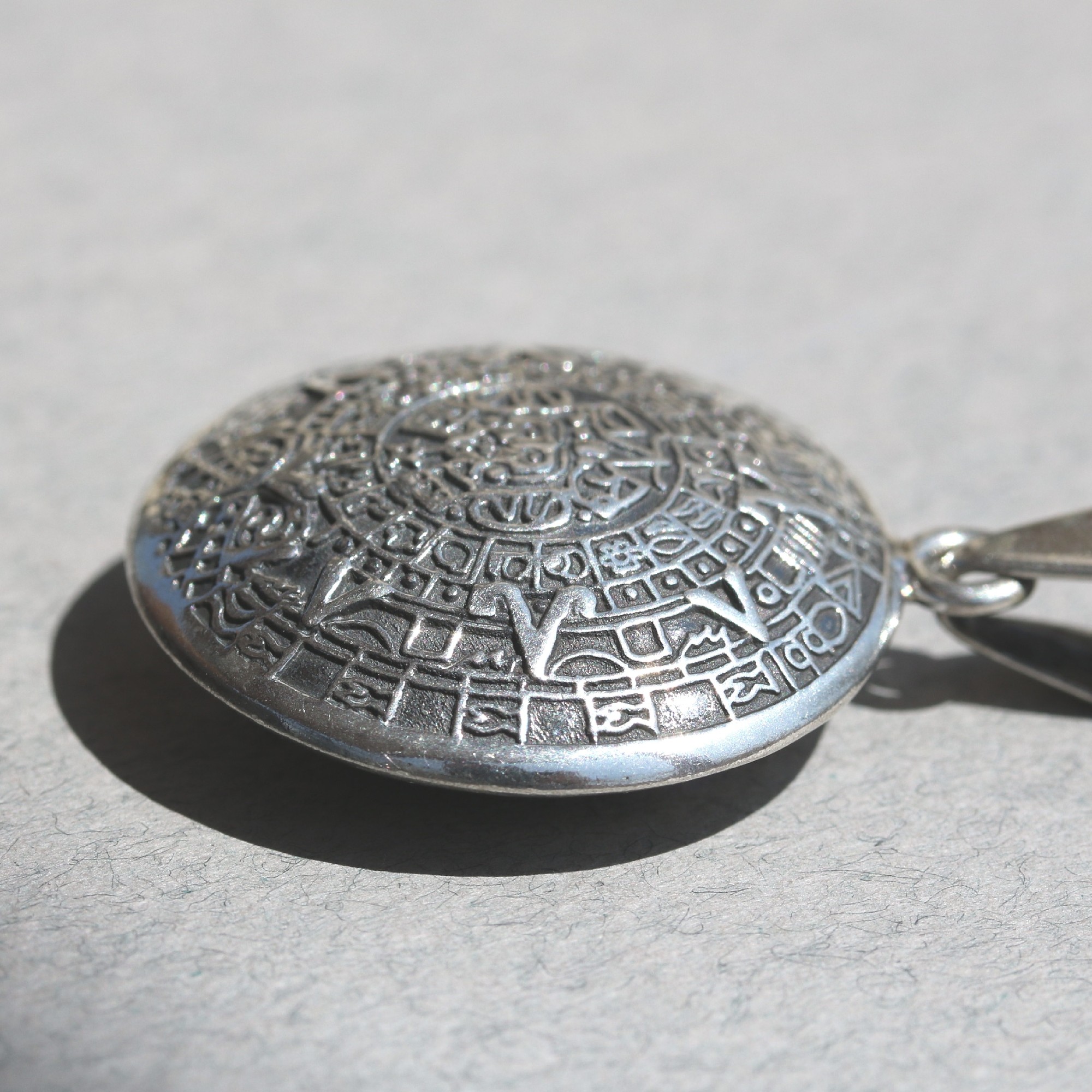 תליון כסף גדול 3 ס"מ קוטר. הלוח נקרא לוח הטצולקין ומורכב מ-260 ימים